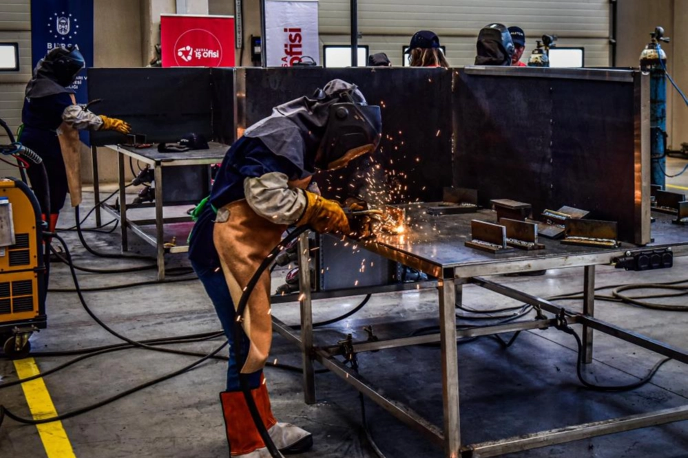 Bursa Büyükşehir Belediyesi tarafından düzenlenen ‘Gazaltı kaynak eğitimi’ne katılan kadınlar, eğitimlerin ardından kaynak ustası olarak istihdam edilecek.