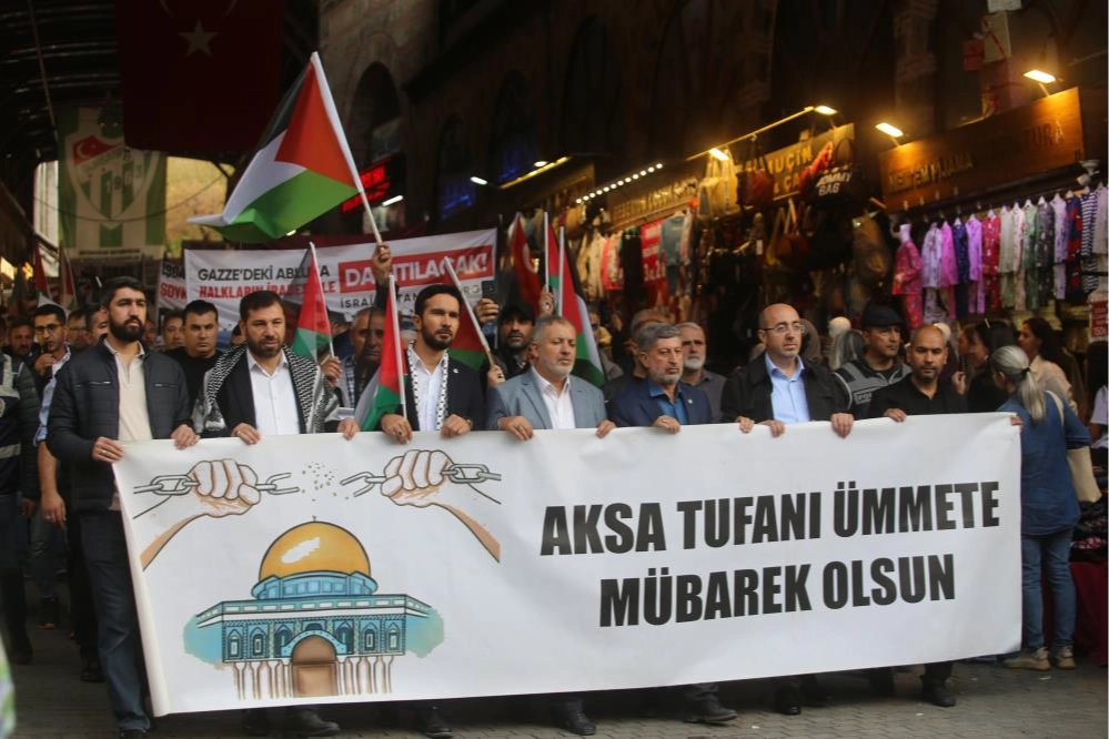 Ulu Camii önünden başlayan yürüyüş Şehreküstü Meydanı'nda sona erdi. Yürüyüş boyunca vatandaşlar, "Küresel Sümud Filosu onurumuzdur" yazılı pankartlar taşıyarak "Çok yaşa Filistin" sloganları attı.