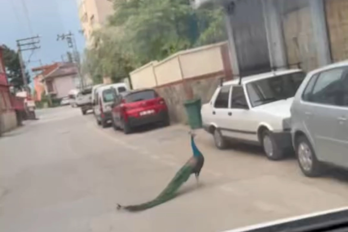 Olay, sabah saatlerinde meydana geldi. Osmangazi ilçesi Hamitler Mahallesi'nde sokak aralarında ilerleyen bir sürücü, yol ortasında dolaşan tavus kuşunu fark edince aracını yavaşlattı. Egzotik görünümüyle dikkat çeken kuş, bir süre yolda ilerledikten sonra yol kenarına doğru yöneldi. O anları kayda alan sürücünün şaşkınlığını arkadaşlarıyla paylaştığı anlar ise kameraya yansıdı.