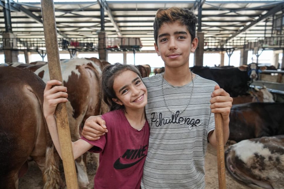 Henüz 12 yaşında olan Aytaç Özmen ile 8 yaşındaki kardeşi Ecrin Özmen, sabahın erken saatlerinden itibaren babalarına yardım ederek hayvanların bakımını üstleniyor. Büyükbaş hayvanların yemlenmesi, sulanması ve temizliği gibi işleri büyük bir sorumlulukla yerine getiren kardeşler, yaşlarının çok ötesinde bir gayret gösteriyor. Bayrama sayılı günler kala pazarda yoğunluk artarken, Aytaç ve Ecrin’in çalışkanlığı hem esnafın hem de vatandaşların takdirini topluyor. Küçük yaşlarına rağmen gösterdikleri çaba, kurban pazarının en güzel görüntülerinden biri olarak hafızalara kazınıyor.