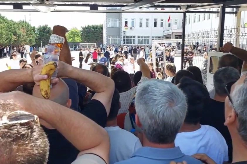 Sınavın başlamasıyla okulun kapılanı kapanırken, bazı velilerin duvarın üzerine çıkıp tellerin arasından bakmaya çalışması bu kadarına da pes dedirtti.