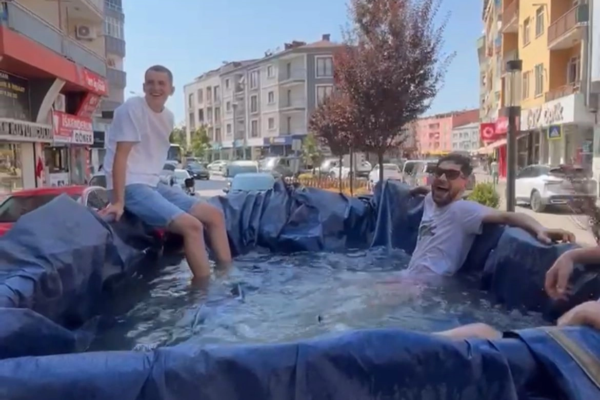 Bursa'nın Gürsu ilçesinde kırsal alanda park halindeki traktörün arkasındaki römorku suyla doldurup adeta yüzme havuzuna çeviren gençler, şehir turu atıp, eğlenceli anlarını cep telefonlarıyla kaydetti. Görüntülerde gençlerin römork içindeki suyun keyfini çıkarırken aynı zamanda traktörle mahalle turu attığı anlar sosyal medyada büyük ilgi gördü. Mahalle sakinlerinin şaşkın ve gülümseyen bakışları arasında geçen mobil havuz turu, sıcak havada serinleme yöntemi olarak takdir topladı.