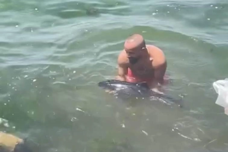Bursa'nın Kurşunlu sahilinde ağ atan balıkçıların ağına yavru yunus balığı takıldı. Çırpınan yunusu fark eden balıkçılardan biri hemen suya atlayıp, yunus balığını kurtarmak için seferber oldu. Dakikalarca uğraşan balıkçı, yunus balığını ağdan kurtarıp tekrar denize bıraktı. Yunus balığının kurtarılma anı ise kameraya yansıdı.