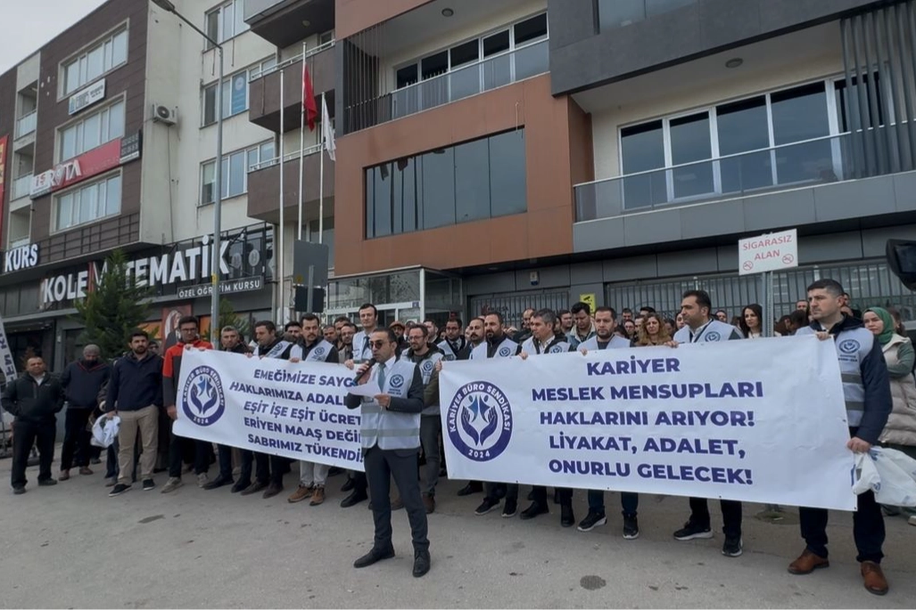 Hem bürokrasiye hem de siyasete sesleniyorum, gelin bu sorunu kökten çözelim. Kariyer mesleklerimizi daha fazla ayrıştırmayalım, çalışma barışına zarar verecek durumları ortadan kaldıralım. Gelir Uzmanları, Muhasebe Uzmanları, SGK Denetmenleri, İl Göç Uzmanları, Muhasebe Denetmenleri, Milli Emlak Uzmanları, Ticaret Denetmenleri, Mali Hizmetler Uzmanları, Vergi İstihbarat Uzmanları en az diğer kariyer mesleklerimiz kadar önemliler ve değer görmeyi hak ediyorlar. Yapılan teklifle maaş farkı arasındaki makas hayli açılırken 55 bin TL’yi buluyor. Kamuya sundukları katkı diğer kariyer mesleklerimizden fazladır az değildir. Bu meslektaşlarımızın haklarının teslimi için bugün buradayız yarın nerede olmamız gerekiyorsa da orada olacağız. Çünkü biz cesaretimizi bu meslektaşlarımızın haklılığından alıyoruz. Kimsenin şüphesi olmasın Kariyer Büro sendikasının bu mücadelesi mağdur kariyer mesleklerimiz hak ettiği değeri bulana kadar artarak devam edecektir."