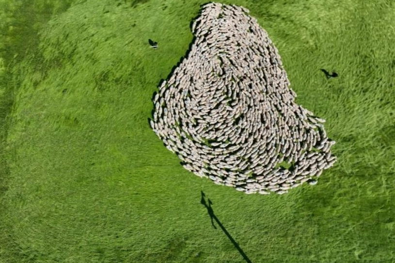 Gökyüzünden çekilen bu eşsiz görüntüler, doğayla iç içe hayvancılığın sanatsal bir anlatıma dönüştüğünü gözler önüne serdi. 20 bin küçükbaş hayvanın meralarda otlatıldığı işletmede, çobanlar tarafından yönlendirilen sürünün senkronize hareketi, izleyenleri adeta mest etti. Çobanların yönlendirmesiyle oluşan bu dairesel hareketin gökyüzünden görüntüsü, adeta bir dans gösterisini andırdı.