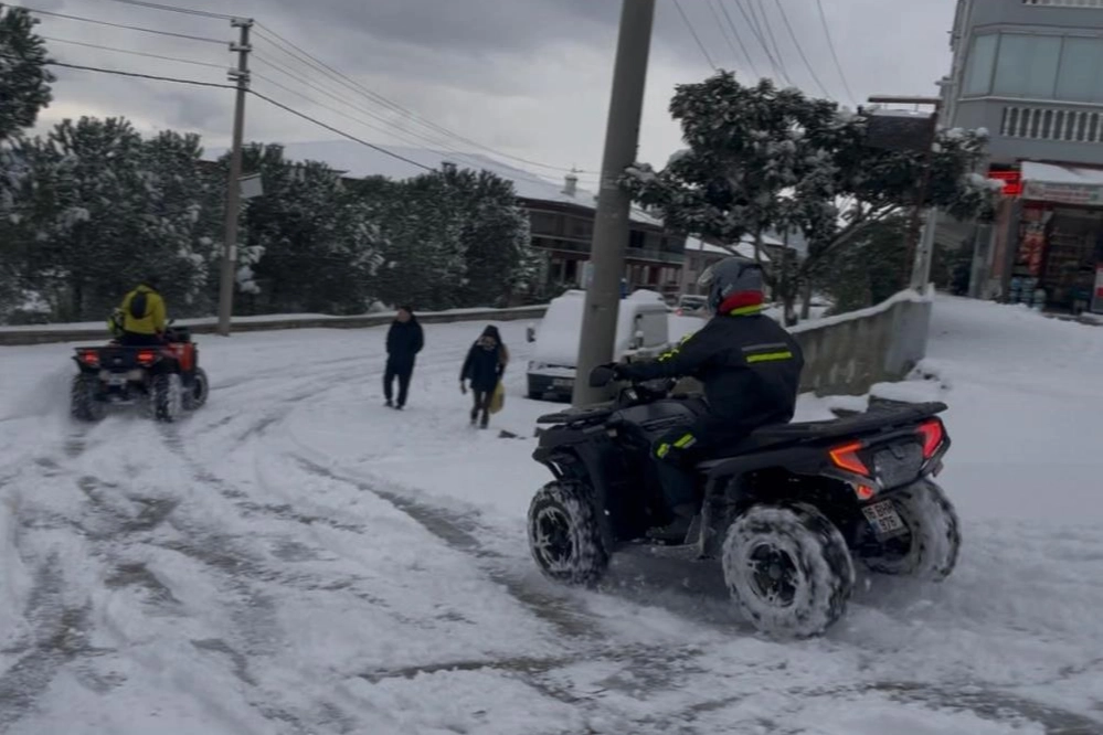 Mudanya'da bazı vatandaşlar dört tekerli motorlarıyla kar üzerinde sürüş yaparken, çocuklar sokaklara çıkarak kardan adam yaptı. Sokaklar adeta çocukların kar pistine döndü.