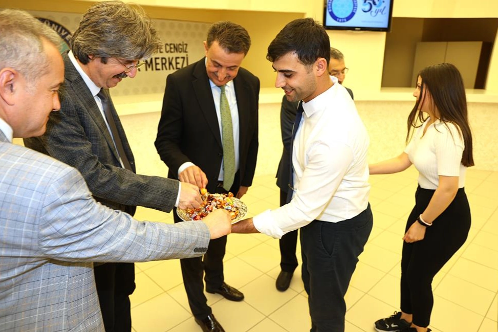 Prof. Dr. Mete Cengiz Kültür Merkezi’ndeki sergi alanında düzenlenen bayramlaşma töreninde Rektör Prof.Dr. Ferudun Yılmaz, Rektör Yardımcıları Prof. Dr. Cafer Çiftci, Prof. Dr. İrfan Kırıştıoğlu ve Prof. Dr. Zekeriyya Arı, Genel Sekreter Mehmet Aydemir ve Genel Sekreter Yardımcıları Necip Al ile Tarık Kelleci hazır bulundu. Tören öncesinde kısa bir selamlama konuşması gerçekleştiren Rektör Yılmaz, İslam âleminin Kurban Bayramı’nı tebrik ederek, birlik ve beraberlik içerisinde nice mutlu bayramlar temennisinde bulundu. "Hep birlikte çalışmaya devam edeceğiz" Prof. Dr. Ferudun Yılmaz, "Bahar dönemi yoğun bir süreçten geçtik. En son geçen hafta YÖKAK akreditasyon ziyareti yapıldı. Orada hem idari hem de akademik personelimizin çok içten ve azimli gayretlerini gördük. Güzel bir sonuç alacağımızı ümit ediyoruz. Bayramlar dargınların barıştığı, sevinç ve mutluluk günleridir. Böylesi günlerde yitirdiklerimizi ve ayrı kaldıklarımızı da hatırlıyoruz. Gidebiliyorsak memleketlerimizi ziyaret ediyoruz. Kurban Bayramı hepimiz için ayrı bir öneme sahip. Yardımlaşmanın, dayanışmanın en güzel örneklerinden birisidir. Bir yandan da dünyada açlıkla mücadele eden, savaşta olan milletlerin olduğunu hatırlamamız gerekiyor. İnşallah yakın zamanda hepsi özgürlüklerine ve ekonomik bağımsızlıklarına kavuşurlar. Bayramın hepimize neşe, sağlık ve huzur getirmesini diliyoruz" ifadelerini kullandı. Konuşmaların ardından üniversite yöneticileri törene katılan tüm personelle tek tek bayramlaştı.