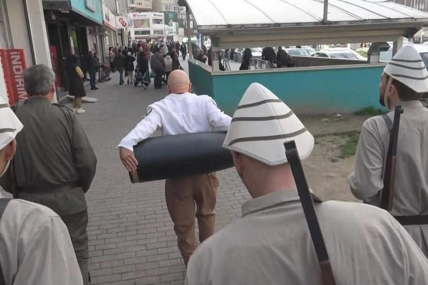 Seyit Onbaşıyı canlandıran tiyatrocu ve silah arkadaşlarının temsili 215 kilogramlık top mermisiyle metroya binmesi ve gösterisi izleyenleri gözyaşlarına boğdu. Metroda ve Bursa sokaklarında duygu dolu anlar kameraya yansıdı.