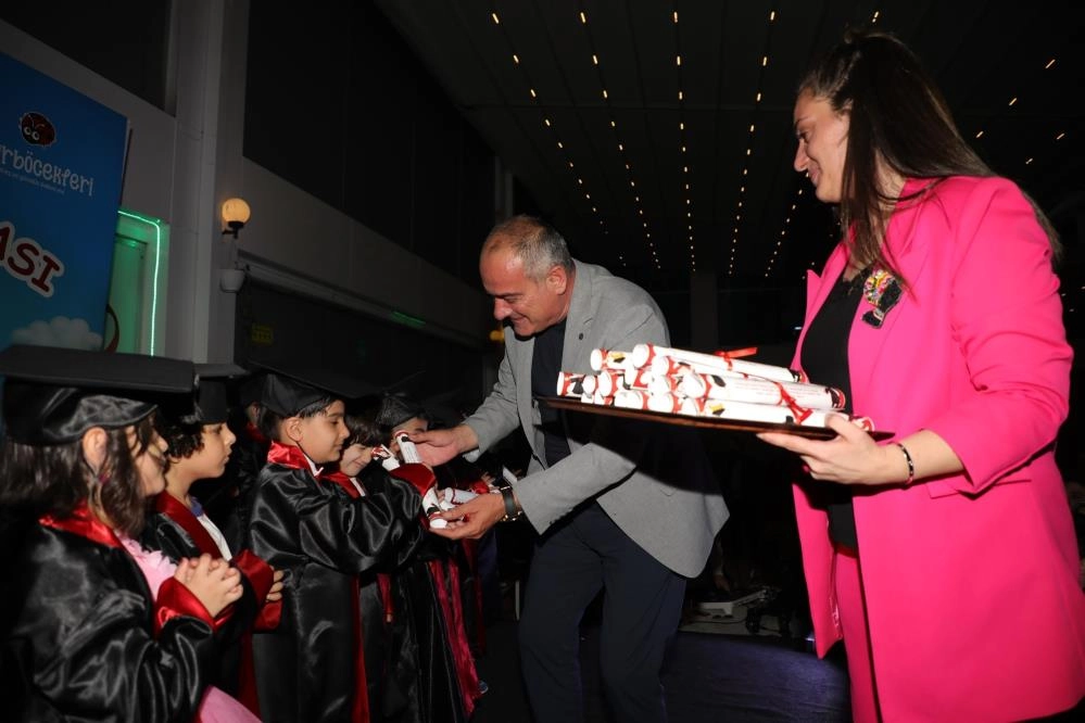 Cemil Meriç Kültür Merkezi’nde gerçekleşen konser seyircinin yoğun ilgisiyle karşılanırken, Gemlik Belediye Başkanı Mehmet Uğur Sertaslan eşi Gamze Sertaslan ile birlikte salonda yerini aldı. Halk müziğinden pop müziğe kadar geniş bir repertuarla seyircinin karşısına çıkan koro, izleyenlerden tam puan aldı. Şef Barış Bozyiğit‘in yönetimiyle gerçekleşen çocuk korosu konseri İzmir Marşı ve Memleketim şarkısıyla sona ererken, seyirci tarafından ayakta alkışlandı. Gemlik Belediye Başkanı Mehmet Uğur Sertaslan konserde emeği geçenleri ve birbirinden özel parçaları seyirciyle buluşturan çocuk korosu üyelerini tebrik ederken, Gemlik’te sanata ve sanatçıya destek vermeye devam edeceklerini, her yaştan yurttaşın katılabileceği kültürel etkinliklerinin süreceğini belirtti. Uğur Böcekleri Gündüz Bakım evi tarafından düzenlenen mezuniyet ve yılsonu gösterisine de katılan Başkan Mehmet Uğur Sertaslan, Gemlik Belediyesi’nin sosyal yaşam merkezine kurduğu kreş ile ücretini karşılayamadığı için evde çocuklarına bakmak zorunda kalan kadınlara sunulan hizmet ile bu derdin ortadan kalktığını ve kadın iş gücüne katkı sağladığını söyledi. Sertaslan, “Kreşimiz, her yıl onlarca minik öğrencimizi eğitim hayatına hazırlıyor. 3 – 6 yaş arasındaki çocuklarımıza hizmet veren kreşimizden 88 öğrencimiz faydalandı. Çocuklarımızı çok seviyoruz. Onların daha iyi şartlarda eğitim alması için tüm gücümüzü ortaya koyuyoruz. Bugün, 35 öğrencimiz eğitim hayatına adımlarını atıyor. Yolları ve bahtları açık olsun. Vatana, millete, Atatürk ilke ve inkılaplarına bağlı birer nesil olsunlar. Gemlik Belediyesi olarak tüm projelerimizi çocukların daha mutlu bir şehirde yaşaması için yapıyoruz” dedi.