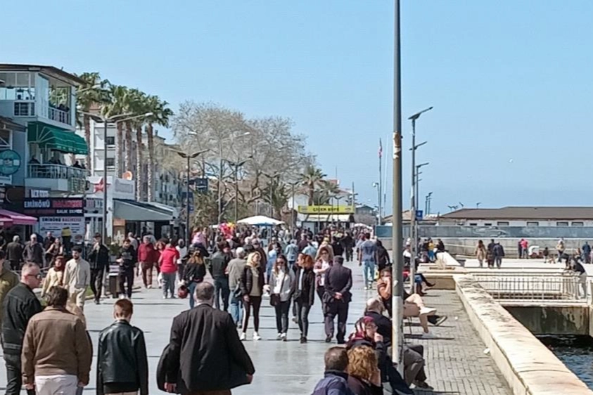 soluğu Mudanya’da aldı. Sahil Bulvarında adeta adım atacak yer kalmadı. Çocuklarıyla beraber gezerken denize olta atıp balık tutmaya çalışanlardan, çocuklarını oyun parklarında eğlendirmeye çalışan aileler hallerinden oldukça mutlu görünüyorlardı. Çay