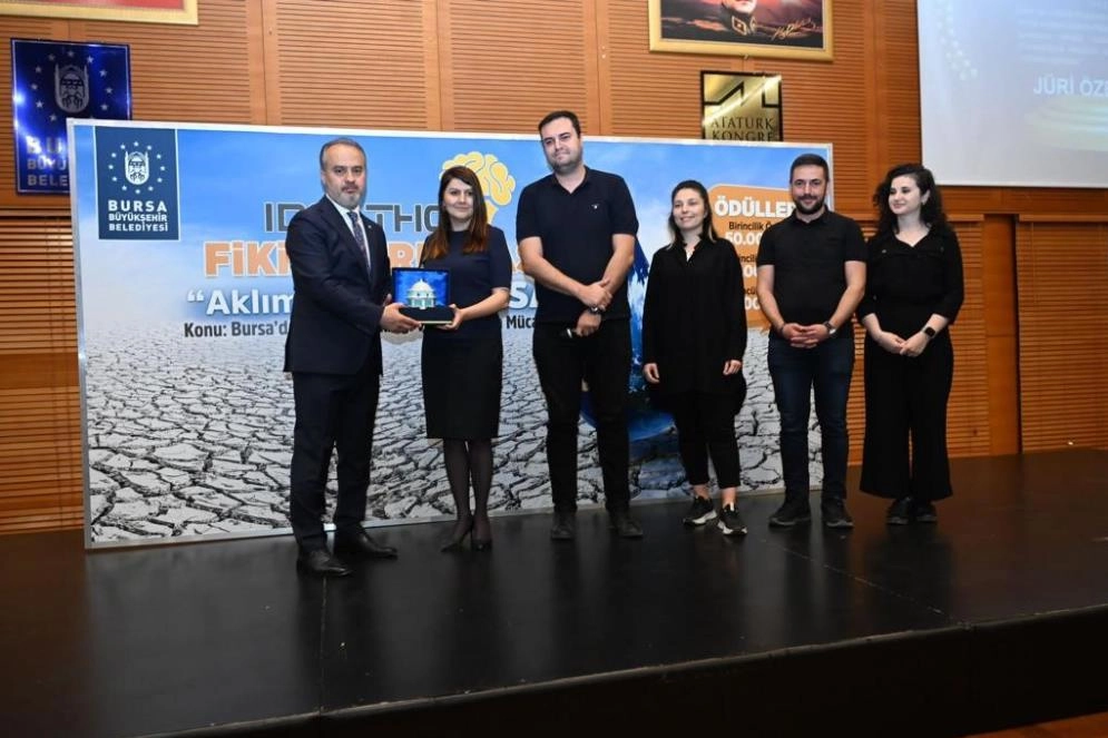 İklim değişikliğinin önlenmesi, kuraklık etkisine karşı kentin dirençli hale gelmesi su kaynaklarının konularında fikir üreterek projeler geliştiren Mustafakemalpaşa Belediyesi ekibi, ‘sürelim, dönüştürelim, iklim değişikliğini önleyelim' projesiyle yarışmaya katıldı. Elektrik üreten bisiklet yolları yapımını içeren proje fikirleri ile ulaşımdan kaynaklı karbon salınımını azaltarak iklim değişikliğini önleme projesi, Jüri özel ödülüne layık görüldü. Proje katılımcılar tarafından inovatif, çevreci ve sürdürülebilir olarak değerlendirildi. Ödülü İklim Değişikliği ve Sıfır Atık Müdürlüğü Müdürü Ayşenur Ciğeroğlu, Bursa Büyükşehir Belediye Başkanı Alinur Aktaş'tan, teslim aldı. Çevre dostu projeler ile doğa dostu belediyecilik bilinci oluşturan Mustafakemalpaşa Belediye Başkanı Mehmet Kanar, "Böyle naçizane bir ödüle layık görülmenin onuru içerisindeyiz. Mustafakemalpaşa Belediyesi olarak İklim Değişikliği ve Sıfır Atık Müdürlüğümüz ile hayata geçirdiğimiz sayısız proje ile iklim değişikliğinin önüne geçmeye çalışıyoruz. Tarım alanı olarak en büyük yüz ölçümüne sahip olduğumuz Mustafakemalpaşa'mızı korumaya devam edeceğiz. Bizleri bu kıymetli ödüle layık gören jürimize, Bursa Büyükşehir Belediye Başkanımız Alinur Aktaş'a teşekkürlerimi sunuyorum" dedi. Başkan Kanar, Yarını Koruyanlar Ekibi Proje Lideri, Ayşenur Ciğeroğlu, Proje Üyesi Sinem Özkara, Proje Üyesi Zeynep Bürde Yılmaz, Proje Üyesi Oğul, Proje Üyesi Erkan Filiz'e emeklerinden dolayı teşekkür etti.