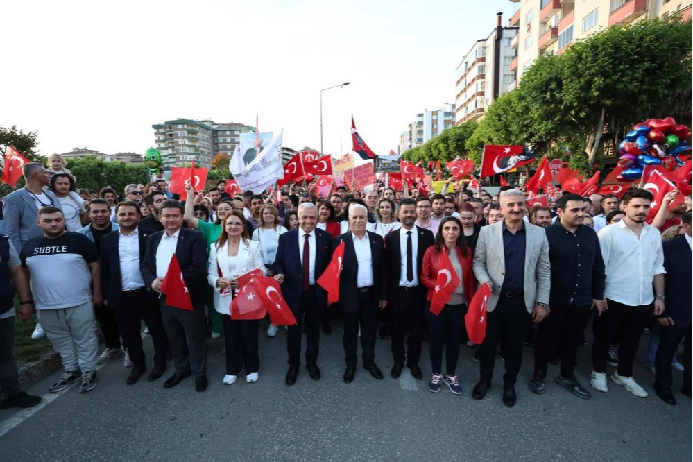 Mustafa Kemal Atatürk’ün Samsun’a ayak basarak milli mücadeleyi başlattığı ve Türkiye Cumhuriyeti’nin bağımsızlık ateşinin yandığı gün olan 19 Mayıs, 105. yılında Nilüfer’de büyük bir gururla kutlandı. Ulu Önder Mustafa Kemal Atatürk’ün “Doğum günüm” dediği ve gençlere armağan ettiği bu günün 105. yılında Nilüfer Belediyesi, binlerce Bursalı’nın katılımıyla yürüyüş düzenledi. FSM Bulvarı’ndan başlayan yürüyüşe katılanlar, ellerinde bayraklarla Nilüfer Cumhuriyet Meydanı’na kadar marşlar eşliğinde yürüdü. CHP Bursa İl Başkanı Nihat Yeşiltaş, CHP Bursa Milletvekili Nurhayat Altaca Kayışoğlu, Bursa Büyükşehir Belediye Başkanı Mustafa Bozbey, Nilüfer Belediye Başkanı Şadi Özdemir ile eşi Nuray Özdemir, Osmangazi Belediye Başkanı Erkan Aydın ile CHP Nilüfer İlçe Başkanı Özgür Şahin de gençlerin bu kutlu yürüyüşüne eşlik etti. Nilüfer Belediye Başkanı Şadi Özdemir, yürüyüşün ardından eşi Nuray Özdemir ile birlikte Nilüfer Cumhuriyet Meydanı’nda kurulan sahneye çıkarak, alanı dolduran gençleri selamladı. Saygı duruşu ve İstiklal Marşı’nın okunmasının ardından gençlere seslenen Başkan Şadi Özdemir, “Cumhuriyetine sahip çıkan gençlerimizle burada olmak çok güzel. Işıl ışıl, pırıl pırıl gençlerimizle bayramımızı kutlamak ne büyük mutluluk. Sizin coşkunuzu görmek, geleceğe dair umut veriyor” dedi. 105 yıldır yanan kurtuluş meşalesinin, gençlerle birlikte sonsuza dek yanmaya devam edeceğini söyleyen Başkan Şadi Özdemir, gençlerin bu önemli bayramını kutladı. Atatürk’ün ülkeyi gençlere emanet ettiğini vurgulayan Nilüfer Belediye Başkanı Şadi Özdemir, “Hep birlikte onun izinde, onun verdiği güçle, umutla demokrasimize sahip çıkacağız. Geleceğimize sahip çıkacağız. Ay yıldızlı bayrağımızı hep önde tutarak, vatan sevgisini yüreğimizde duyarak, geleceğimiz için birlikte yürüyeceğiz” şeklinde konuştu. Büyük Önder Mustafa Kemal Atatürk’ün “Yurtta sulh, cihanda sulh” hayalini gençlerin gerçekleştireceğine inandığını belirten Başkan Şadi Özdemir, konuşmasını şu sözlerle tamamladı: “Bu mutlu günde bir kez daha söylüyoruz ki, size inancımız çok, umudumuz diri. Demokrasiye, özgürlüğe, barışa ve geleceğe olan inancımız tam. Şimdi sesimizi her zamankinden gür ve yüksek çıkarmanın zamanı. Şimdi geleceğimize sahip çıkma zamanı. Sizlere inanıyoruz, güveniyoruz ve çok seviyoruz. Bayramınız kutlu olsun.” Gecede sahneye çıkan Nilüfer Kent Konseyi Gençlik Meclisi Eş Başkanları Yağmur Akın ile Çağrı Önal da yaptığı konuşmada gençlerin yaşadıkları sorunlara değindi. Konuşmaların ardından ünlü rapçi Ceza’nın sahneye çıkmasıyla coşku doruğa tırmandı. “Fark Var”, “Sus Pus” , gibi dillerden düşmeyen ve son albümlerinden şarkılar seslendiren Ceza’ya, gençler de eşlik etti.
