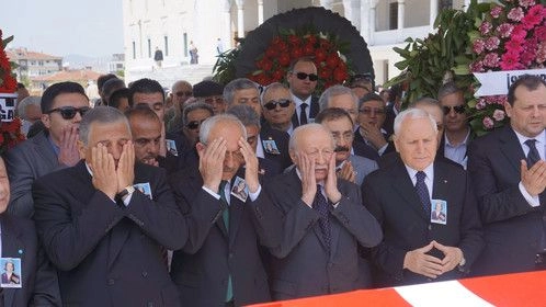 Ankara’da tedavi gördüğü hastanede yaşamını yitiren Cumhuriyet Halk Partisi (CHP) Milletvekili Oktay Ekşi’nin eşi Prof. Dr. Aysel Ekşi, son yolculuğuna uğurlandı. Kocatepe Camii’nde kılınan cenaze namazına, CHP’li Ekşi, çocukları ile CHP Genel Başkanı Kemal Kılıçdaroğlu, eski TBMM Başkanı Köksal Toptan, eski İçişleri Bakanı İdris Naim Şahin, eski Adalet Bakanı Hikmet Sami Türk, eski Başbakanlardan Bülent Ecevit’in eşi Rahşan Ecevit, Zaman Gazetesi Genel Yayın Yönetmeni Ekrem Dumanlı, çok sayıda CHP’li vekil, siyaset ve medya dünyasından isimler katıldı. Cami avlusunda bir süre bekleyen Rahşan Ecevit, cenaze namazı kılınmadan camiden ayrıldı. Törene katılan Kılıçdaroğlu ise eşini kaybeden Oktay Ekşi’ye taziyelerini iletti. Öğle namazına müteakip kılınan cenaze namazının ardından Aysel Ekşi’nin cenazesi defnedilmek üzere memleketi Ordu’ya götürüldü. Eşinin tabutuna omuz veren Oktay Ekşi, eşini son yolculuğa uğurladı.