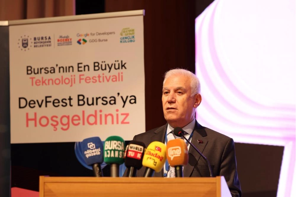 Bursa’nın en büyük teknoloji festivali ‘DevFest’25 Bursa Teknoloji Festivali’ne katılarak teknoloji tutkunlarıyla bir araya gelen Bursa Büyükşehir Belediye Başkanı Mustafa Bozbey, her geçen gün daha fazla dijitalleşen dünyada yeni fikirlerin, girişimlerin ve icatların yaşamın doğal bir parçası haline geldiğini ifade etti. Teknoloji dünyasının, girişimcilerin, yazılımcıların ve gençlerin katkısıyla her geçen gün daha da geliştiğini vurgulayan Başkan Mustafa Bozbey, "Yapay zekanın hayatın her alanında konuşulduğu bir ortamda gelişmeleri takip etmek, yeni teknolojileri ve yazılım dillerini yakalamak, çağın gerisinde kalmamak hayati önem taşıyor. İşte bu yüzden DevFest 2025, dijital aklın ortaya koyduğu yenilikleri keşfettiğimiz, güncel gelişmeleri doğrudan deneyimlediğimiz ve geleceği birlikte tartıştığımız çok değerli bir platformdur" dedi.