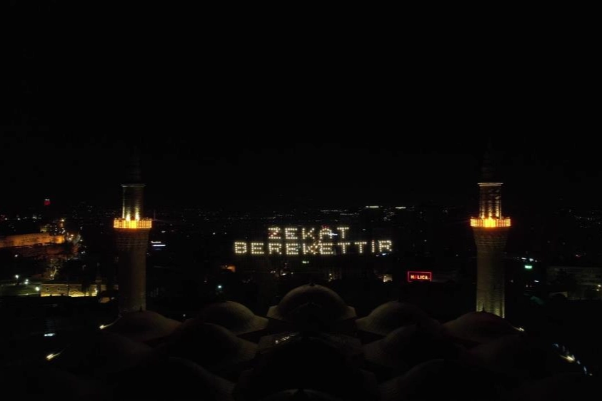 Osmanlı'dan miras asırlık mahya geleneği Bursa'da 627 yıllık tarihi Ulu Cami'de "Zekat Berekettir" yazısı ile şehri aydınlattı. Daha önceki uygulamalardan farklı olarak bu sefer yazı Uludağ'dan okunacak şekilde minarelere asıldı.