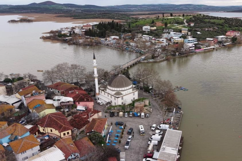 "Uluslararası Yaşayan Göller Ağı"na dahil ve "Türkiye'de Yaşayan Göl" ünvanına sahip tek göl olan Uluabat Gölü'ndeki su seviyesi, yağışların ardından ciddi oranda yükseldi. Yazın kuraklık tehdidi altında kalan; derinliği 1 metreye kadar düşen Uluabat Gölü'nde su seviyesi 10 yıl aradan sonra ilk kez 10 metreyi geçti. Evlerin önüne kadar gelen hatta içine giren sular, bazı noktada küçük ara sokakları bile doldurdu. Kafelerin renkli merdivenleri dahi göl sularına gömüldü, kayıklar yükseklere çekildi. Göçmen kuşların uğrak yeri olan ve kadın balıkçılarıyla meşhur olan Uluabat Gölü kenarındaki 2 bin 600 yıllık Gölyazı köyü de küçük Venedik ünvanını yeniden kazandı.