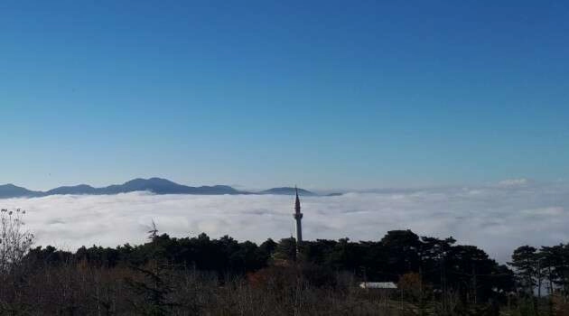 Türkiye’nin büyük bölümü soğuk hava ile mücadele ederken Uludağ eteklerindeki bir köyü sis altında kalması ortaya muhteşem bir manzarayı ortaya çıkardı. Tatil için Uludağ’a gelen vatandaşlar, gördükleri manzara karşısında araçlarını park ederek o anın keyfini çıkarıp, bol bol fotoğraf çektirdi. Türkiye’nin önemli kış turizm merkezlerinden Uludağ’ın eteklerindeki Kirazlı Köyü Dolubaba mevkiindeki yerleşim alanını sis kapladı. Köy, sis altında kalırken ortaya muhteşem bir manzara ortaya çıktı. Köyün büyük bölümü sis altında kalırken sadece minarenin üst bölümü ile anten direklerinin üst bölümleri göründü. Manzara, güneşin batma saatine denk gelince daha da muhteşem bir hal aldı.ARAÇLARINI PARK EDİP FOTOĞRAFLADILAREşsiz manzarayı gören Uludağ’dan inen vatandaşlar da araçlarını park ederek manzarayı fotoğrafladılar. Balıkesir’den Uludağ’a gelen Zafer Orkun Onat, "Manzara, çok ender rastlanan bir manzara gerçekten. Türkiye’nin değişik yerlerinde çok güzel manzaralar var ama burası çok özel olmuş. Özellikle cami minaresi sis altında kalması muhteşem bir manzara." diye konuştu. Onat’ın oğlu Onat Ongun ise "Çok güzel harika. İlkkez geldim. Gitmek istemiyorum." dedi. TUĞLU BABA'NIN TÜRBESİ VARSisle kaplanan yerleşim alanında, Bursa'nın fethinin manevi mimarlarında olan Dolu (Tuğlu) Baba Hazretleri'nin türbesi bulunuyor. Bursa’nın fethinin manevi dinamiklerinden olan, Anadolu’nun Türk ve İslamlaşmasında çok önemli bir yere sahip erenlerden Dolu Baba Hazretleri, Kirazlı Köyü Karabelen mevkiinde her sene düzenlenen törenlerle anılıyor.