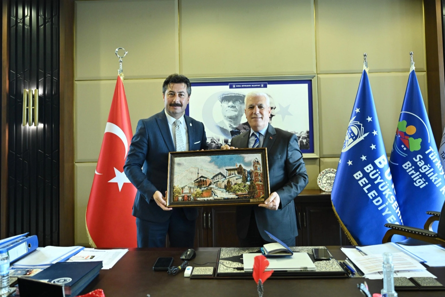 Yenişehir Belediye Başkanı Ercan Özel, Bursa Büyükşehir Belediye Başkanı Mustafa Bozbey’i makamında ziyaret etti. Başkan Bozbey, Ercan Özel’i 31 Mart’ta kazandığı seçim nedeniyle kutlarken başarı dileklerini iletti. Büyükşehir Belediyesi’nin Yenişehir’deki çalışmaları hakkında da görüş alışverişinde bulunan Ercan Özel ile Mustafa Bozbey, ilçede yapılması planlanan projeler hakkında da ortak çalışma noktasında görüş birliğine vardı. Konu hakkında açıklama yapan Başkan Özel, “Bursa Büyükşehir Belediyesi ile birlikte Yenişehir’de yapılması planlanan projeler hakkında fikir alışverişinde bulunduk. Eksikler konusunda bilgilendirme yaptık. Bölgemizin planlı gelişimi için el ele vererek ilçemizi hep birlikte hak ettiği değere kavuşturacağız” dedi.