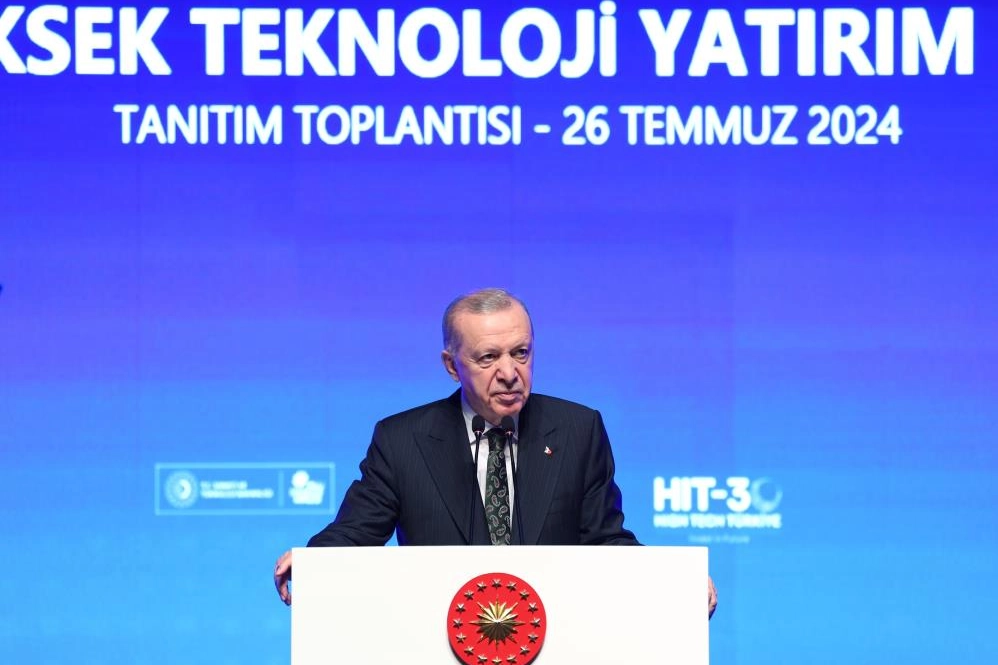 Cumhurbaşkanı Recep Tayyip Erdoğan, Sanayi ve Teknoloji Bakanlığı tarafından Beyoğlu Atatürk Kültür Merkezi’nde düzenlenen “Yüksek Teknoloji Yatırım Programı HİT- 30” programına katıldı. Programa Erdoğan’ın yanı sıra, Sanayi ve Teknoloji Bakanı Mehmet Fatih Kacır ve çok sayıda katılımcı yer aldı. Yapılan sertifika töreninin ardından Cumhurbaşkanı Recep Tayyip Erdoğan kürsüde bir konuşma gerçekleştirdi. Cumhurbaşkanı Erdoğan sanayicileri teşekkür ettiğini ifade ederek, “Bundan sonrada inşallah sizlerin yanında olmayı özellikle sizlerin ortaya koyduğu icraatle yanınızda olmayı sürdüreceğiz. Yeterki siz Türkiye üretim kapasitesine güç katın. Allah’ın izni ile bizi sizlerden hiçbir zaman kimse ayıramayacaktır. Sermaye düşmanlığı yatırım karşıtlığı yapanlara da asla fırsat vermeyiz” dedi. “ABD'nin Kongresi'nde soykırımcı bir katilin nasıl alkışlandığını tüm dünya izledi” Kürsüde yaptığı konuşmada Amerika’da mecliste yaptığı konuşmada İsrail Başbakanı Binyamin Netanyahu’nun alkışlanmasına eleştirilerde bulunan Erdoğan, Filisti’ne yaşanan katliamlar tepki gösterdi. Erdoğan, “Özellikle dünyamızın içinden geçtiği büyük dönüşüm sürecinde geleceği öngörerek atılan bu adımlar Türkiye'nin hedefleri açısından çok önemlidir. İkinci Dünya Savaşı'nın galiplerinin ekonomik, siyasi, diplomatik çıkarlarını korumak amacıyla kurulan mevcut küresel sistem artık miadını doldurmaya başlamıştır. Mesela Suriye'deki ihtilaf tam 13 yıldır sürüyor. Gazze'de 40 bin sivil hayattan koptu. Soykırımın önüne yaklaşık 10 aydır geçilemedi. ABD'nin Kongresi'nde soykırımcı bir katilin nasıl alkışlandığını tüm dünya izledi. İnsanlığa hizmeti olan alkışlanır. Temsilciler Meclisi'nin dışında da onlara karşı tam aksi bir tavır ortaya konuluyor. Lafa gelince tüm dünyaya demokrasi ve insan hakları dersi verenler, çağımızın Hitler'ini baş tacı ederken, zerre miskal utanmıyor. Elinde 150 bin Gazzeli'nin kanı olan bir kasabı ağırlayan bununla yetinmeyip hezeyanlarla dolu konuşmasını alkışlayan bir akıl tutulmasıyla karşı karşıyayız 7 Ekim'den beri insanlar sinema filmi izler gibi ölümleri uzaktan seyrediyor. Bunların katili olan Netanyahu ABD'de alkışlanıyor. Gazze kasabına kürsü verenler akıl tutulması yaşıyor. Akıl ve vicdan tutulmasıyla karşı karşıyayız” dedi. “6 Şubat depremlerinin 104 milyar doları bulan faturası bizi yolumuzdan alıkoymadı” Erdoğan konuşmasının devamında ekonomi ile ilgili önemli açıklamalarda yaparak, “Küresel sistemin kökten sarsıldığı bu kaostan ancak güçlü durabilen, ayakta kalabilen, var olanın üstüne koyabilen, kendi göbeğini kendi kesebilen ülkeler başarıyla çıkma şansına sahiptir. Türkiye olarak insanlığın gündeminde yer alan meselelere bu zaviyeden bakıyoruz. Onun için tam bağımsız Türkiye hedefi ile Türkiye yüzyılını inşa etmek için her alanda yoğun bir çabanın içindeyiz. Yatırım, üretim, istihdam, keşif ve ihracat bütün bunlarla birlikte kalkınma yolculuğumuzu hız kesmeden sürdürüyoruz. Ne etrafımızda yaşanan çatışmalar ne de 6 Şubat depremlerinin 104 milyar doları bulan faturası bizi yolumuzdan alıkoymadı. Elbette sarsıldık, elbette sıkıntılar, zorluklar yaşadık. Elbette fedakarlıklarda bulunmak zorunda kaldık. Ama şartlar ne olursa olsun hedeflerimizden asla ve asla kopmadık, kopmuyoruz. Küresel ekonomik fırtınadan ülkemizin en az şekilde etkilenmesi için ne gerekiyorsa yapıyoruz. Türk ekonomisi ile ilgili son dönemde açıklanan veriler hamdolsun doğru yolda olduğumuzu gösteriyor. Sadece kendi iş çevrelerimizin değil yurt dışındaki piyasa aktörlerinin de Türkiye'ye ve Türk ekonomisine güveni yükseliyor. İnşallah çok daha iyi olacak” diye konuştu. Erdoğan konuşmasının devamında ekonomi verilerine atıfta bulunarak, "Türk ekonomisiyle ilgili son dönemde açıklanan veriler doğru yolda olduğumuzu gösteriyor. Türkiye'ye ve Türk ekonomisine güven yükseliyor. Yatırım ortamımızın iyileştirilmesi için gereken adımları atıyoruz. Yapamazsınız diyenlere, yapsanız bile satamazsınız diyenlere gurur duymak yerine Togg’a çamur atanlara rağmen hedefimize ulaştık. Togg'a gösterdiğimiz irade diğer sektörlere de ilham kaynağı oldu. Küresel otomotiv firmaları ve diğer büyük ölçekli araç üreticilerinin elektrikli araç yatırımlarını Türkiye'ye yöneltmesinin önünü açtı. BYD ülkemizde üretim tesisi ve Ar-Ge merkezi kuracak Manisa’da. Başka şirketlerle de görüşmelerimiz sürüyor. Dünya Bankası işbirliği ile yürttüğümüz projelerle 750 milyon dolarlık finansmanı sanayicilerimize sunduk. Türk ekonomisi çok boyutlu dönüşüm sürecinden geçiyor, kabuk değiştiriyor. Ekonomimiz farklı bir lige yükselecek. Gelişmiş ülkeler dahil tüm diyayı etkileyen sis bulutu dağıldığında Türkiye yeni dönemin forveti olacak” diye konuştu. “5 milyar dolarlık teşvik paketini devreye alıyoruz” Elektrikli araçlar için yıllık üretimi 1 milyon adede çıkarmayı hedefleyen teşvik paketinin devreye alınacağını ifade eden Erdoğan, diğer teşvik paketlerini de açıkladı. Erdoğan, “Elektrikli araçlar için yıllık üretimi 1 milyon adede çıkarmayı hedefleyen 5 milyar dolarlık teşvik paketimizi devreye alıyoruz. Amacımız AR-GE ve mühendislik faaliyetlerini kapsayan yeni nesil araç kazanımlarını ülkemize kazandırmaktır. Batarya çağrımız ile 2030 yılına kadar 80 gigawatt saatlik bir kapasite inşa ederek, bölgesel bir üretim üssü olmayı hedefliyoruz. Megawatt saat başına 6 bin dolara kadar sağlayacağımız hibe desteğini de içeren 4,5 milyar dolarlık teşvik paketini yatırımcıların istifadesine sunuyoruz.