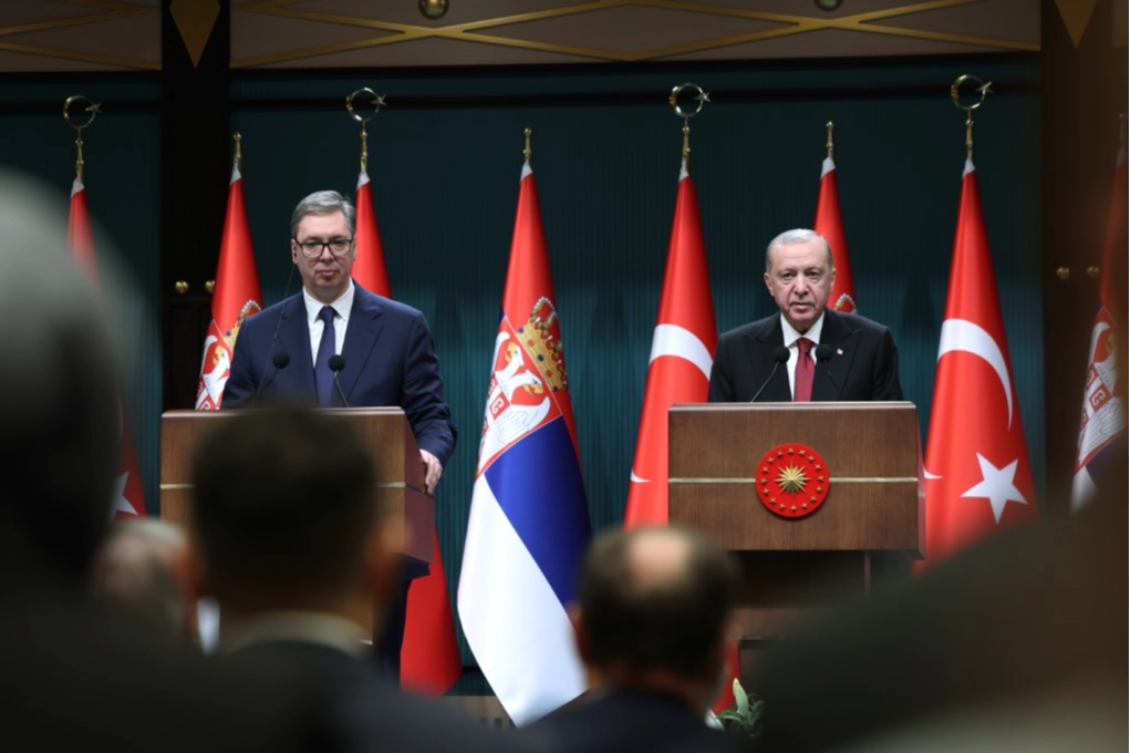 Cumhurbaşkanı Erdoğan, Sırbistan Cumhurbaşkanı Aleksandar Vucic ile Cumhurbaşkanlığı Külliyesinde bir araya geldi. Cumhurbaşkanı Erdoğan, Aleksandar Vucic’i resmi törenle karşıladı ve daha sonra ikili görüşme gerçekleştirdi. Heyetler arası gerçekleştirilen diğer görüşmenin ardından Cumhurbaşkanı Erdoğan ve Aleksandar Vucic ortak basın toplantısı düzenledi.