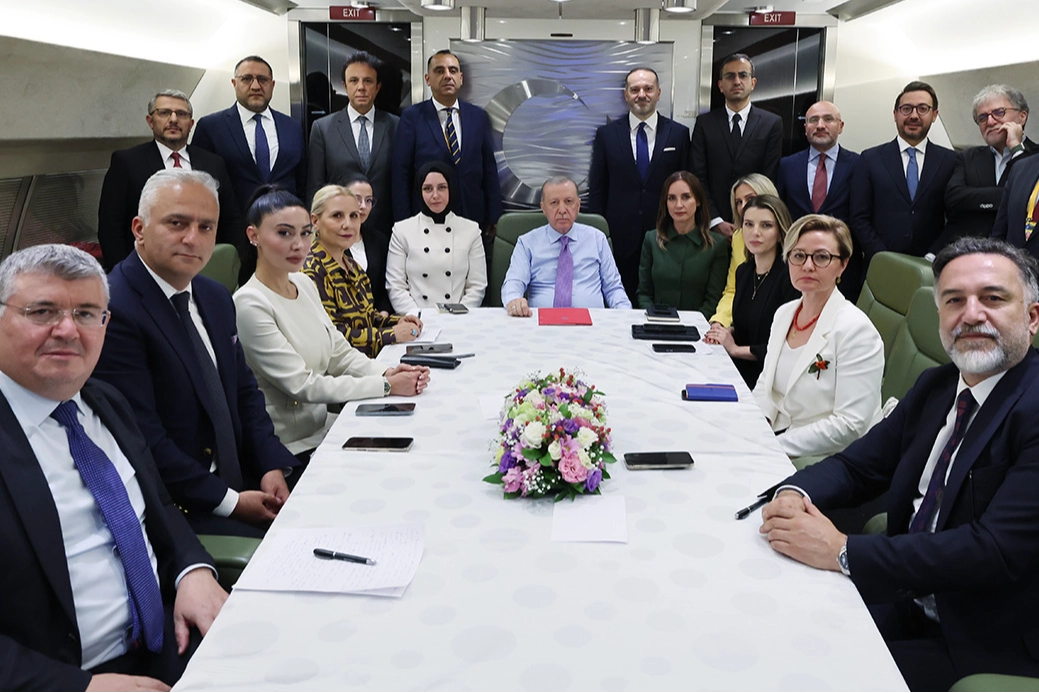 MHP Genel Başkanı Bahçeli'nin ufuk açan söylemlerini ve DEM heyetinin sorumlu tavrını sürecin başarısı açısından çok kıymetli bulduklarını bildiren Erdoğan, "Şunu büyük bir memnuniyetle ifade etmek isterim: Türkiye artık iç cephesini daha sağlam hale getirme yolunda önemli bir mesafe almıştır. Süreç daha tamamlanmamıştır ve provokasyonlara karşı dikkatli olunması şarttır. Çevremizde yaşanan son hadiseler, iç cepheyi güçlendirme çağrımızın ne kadar isabetli bir tutum olduğunu göstermiştir. Yaşananlar ülkemizde Terörsüz Türkiye'ye olan ihtiyacı ortaya koymuş ve desteği artırmıştır. Bundan sonra ülkemizin aydınlık bir geleceğe doğru yürüyüşünde daha güçlü adımlar atacağız. Önümüzdeki hafta nasip olursa DEM heyetiyle benim bir görüşmem olacak. Terörsüz Türkiye konusuyla ilgili konuşacağımız bazı konular var. Bizim bu konuda herhangi bir şüphemiz yok. Biz bir defa öyle bir düzlemde gidiyoruz ki, inancımız bu işi çözmek. Buna inanmış durumdayız. Dışişleri Bakanımız Hakan Bey, MİT Başkanımız İbrahim Bey, Milli Savunma Bakanımız Yaşar Paşa ile bu konuda uyumlu bir çalışmamız söz konusu. Rahmetli Sırrı Süreyya Önder'le, biliyorsunuz, Pervin Buldan beraberce ziyarete gelmişlerdi. İyi ve samimi bir görüşmemiz olmuştu. Arkasından maalesef rahmetli Sırrı Süreyya Önder hastaneye yattı. Önümüzdeki hafta yapacağımız görüşmeden de güzel neticeler çıkaracağımıza inanıyorum. Meclis'te kurulacak komisyonla ilgili olarak da bizler, bir arkadaşımızı görevlendireceğiz ve bu süreci inşallah başarıyla devam ettireceğiz" açıklamalarında bulundu.