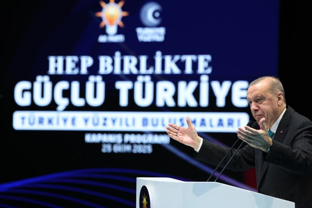 Cumhurbaşkanı Erdoğan, "Artık hem bölgesinde hem de dünyada sözüne itibar edilen, kendisine huzur ve istikrar ihraç eden bir Türkiye var. Barışın, kardeşliğin, kalkınmanın ve adaletin egemen olduğu Türkiye Yüzyılı vizyonumuzu kuvveden fiile çıkarma yolunda tarihi bir eşikteyiz. Türkiye attığı kararlı adımlarla artık küresel bir güce dönüşüyor. Bugün barış, huzur, istikrar denince akla ilk Türkiye geliyor" ifadelerini kullandı. Cumhurbaşkanı Recep Tayyip Erdoğan, İstanbul Kongre Merkezi'nde düzenlenen 'Türkiye Yüzyılı Buluşmaları Kapanış Programı'na katıldı. Programda konuşan Cumhurbaşkanı Recep Tayyip Erdoğan, "Salonlara sığmayan şu coşkunuz için sizleri yürekten selamlıyorum. Bulunduğumuz yer, yerin altında 17 kat. 17 kat yerin altındayız. Belediye başkanlığım dönemimde burayı inşa ettik, böyle bir salonu hazırladık. Yaparsa AK Parti yapar dedik ve bu salonu inşa ettik. Sizlerin heyecanını, sevincini, emeğini gördükçe merhum şairimiz Abdurrahim Karakoç’un şu mısraları hatırıma geliyor; ‘Ben milletim uğruna adamışım kendimi, bir doğrunun imanı bin eğriyi düzeltir. Zulüm Azrail olsa hep Hakk’ı tutacağım, mukaddes davalarda ölüm bile güzeldir’ diyor. Millete hizmet yolunda gecesini gündüzüne katan, milletin çizdiği rotadan asla ayrılmayan, mukaddes dava uğruna ölümü göze alan sizler gibi yol arkadaşlarını şahsıma nasip ettiği için Rabbim’e sonsuz hamdüsenalar olsun. Kurulduğu günden itibaren AK Parti’nin millete hizmet davasını, AK Parti’nin sevda ve hizmet bayrağını tüm Türkiye’de gururla dalgalandıran tüm kardeşlerime kalpten şükranlarımı sunuyorum. Teşkilatlarımız içinde görev almış fakat artık aramızda bulunmayan vefat etmiş yol ve dava arkadaşlarımıza da bu vesileyle Allah’tan rahmet diliyorum. Yoğun ve titiz bir saha çalışmasının nihai değerlendirme toplantısı olarak gördüğüm 'Türkiye Yüzyılı Buluşmaları Kapanış Programı'nın hayırlara vesile olmasını diliyorum. 49 gün gibi çok kısa bir süre zarfında 81 ilde 'Türkiye Yüzyılı Buluşmaları'nı başarıyla tertipleyen yol arkadaşlarımı yürekten kutluyorum. Genel başkan yardımcılarımızdan bakanlarımıza, milletvekillerimizden merkez karar yönetim kurulu üyelerimize 49 gün boyunca sahada ter döken her bir kardeşimin emeklerine sağlık" dedi. AK Parti kadroları olarak Türkiye'de yüzbinlerce vatandaşımızla bir araya geldiklerini kaydeden Cumhurbaşkanı Erdoğan, "Ana muhalefet partisi, ülkemizi yabancılara şikayet turları düzenlerken biz 81 ilimizde, 973 ilçemizde gerçekleştirdiğimiz buluşmalarda milletimizle kucaklaştık. AK Parti kadroları olarak Türkiye'nin dört bir ucunda esnafından çiftçisine, iş insanından akademisyenine, işçisinden emeklisine son 2 ayda yüzbinlerce vatandaşımızla bir araya geldik. Mensubu olmakla iftihar ettiğimiz milletimiz için yaptığımız çalışmaları ve ortak gelecek vizyonumuzu Türkiye Yüzyılı Buluşmalarında çok net bir şekilde ortaya koyduk. İstikametini milletin çizdiği eser ve hizmet notunu daima milletin verdiği bir hareket olarak toplumun tüm kesimlerinin nabzını tuttuk. İstişare mekanizmasını efradını camii ağyarını mani olacak şekilde tam teşekküllü işlettik. Tabii CHP'li belediyelerde işimiz bir daha zor. Şikayet listemiz biraz daha uzundu. CHP’li belediyelerin adeta alameti farikası olan yolda kalan otobüslerden akmayan musluklara, toplanmayan çöplerden en tepeden en uca uzanan yolsuzluk iddialarına kadar birçok sorun bize iletildi. Son 2 seçimde el değiştiren yerel yönetimlerdeki dertlerin kabarıklığı doğrusunu söylemek gerekirse bizim açımızdan da ibretliktir. Şimdi bu toplantılardan aldığımız geri dönüşler ve sizlerden gelen verilerle önümüzdeki döneme ilişkin yol haritamıza inşallah son şeklini veriyoruz. Şunu burada özellikle belirtmek istiyorum; AK Parti yolunu da yönünü de güzergahını da milletin belirlediği partidir. AK Parti’ye cesaret veren milletimizin çelikten iradesidir, duasıdır, desteğidir, refikliğidir. Elde ettiğimiz her başarı da gözü yaşlı anaların duası vardır. Yerim ve öksüzlerin payı vardır. Allah için koşturan kardeşlerimizin fedakarlığı vardır. Yüreği bu ülke için çarpan milyonlarca kardeşimizin alın teri vardır. Bu hareket, erdemliler hareketidir. Bu ocak, basiret, feraset ve merhamet ocağıdır. Rahve ovasındaki o akıncı ruh, kutlu fethi gerçekleştiren iman ve inanç işte buradadır" ifadelerini kullandı. ‘Halk için halka rağmen’ diyen jakobenleri kerameti kendinden menkul muhterisleri semtimize uğratmadıklarını ifade eden Cumhurbaşkanı Erdoğan, "2053’ü, 2071’i hedefleyenler mevzi kazanımlarını değil, uzun soluklu ve inşallah kalıcı zaferlere odaklananlar işte bu salondadır. Burası şahsi istikbal peşinde koşanların değil, millete hizmet için koşanların , bu yolda canını dişine takanların yuvasıdır. Gençler memlekete nasıl daha fazla katkı yapabilirim, Türkiye’nin geleceğini nasıl inşa edebilirim diyenler işte bu çatının altındadır. Bugüne kadar ne yaptıysak milletimiz için yaptık, ‘halk için halka rağmen’ diyen jakobenleri kerameti kendinden menkul muhterisleri semtimize uğratmadık. Milletin rotasından başka merciler edilenler bu partinin ve bu hareketin içinde yaşama şansı bulamadılar. Kalbinde, ruhunda, zihninde, milletin rehberliği konusunda en küçük bir tereddüt yaşayanlar bu harekete ayak uyduramadılar. İddiayla, tüm samimiyetimle söylüyorum, AK Parti Türkiye’de kurumsal teşkilatlanmayı adeta icat eden bir partidir. Bizim siyasetteki en büyük güç ve güven kaynağımız teşkilatlarımızdır. Bu vefakar teşkilattaki yorgunluk, bıkkınlık ve yıpranmayı göremezsiniz. İlk günkü kadar hey