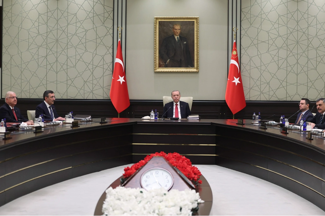 "Bölgemizi ve tüm dünyayı büyük bir belirsizliğe sürükleyerek küresel ekonomik dengeleri olumsuz etkileyen İsrail ve ABD ile İran arasındaki savaşın sona erdirilmesine yönelik gayretlerden memnuniyet duyulduğu belirtilmiş; vatandaşlarımızın ve hudutlarımızın güvenliğine ilişkin tüm tedbirlerin titizlikle alınmaya devam edileceği hatırlatılmıştır."
