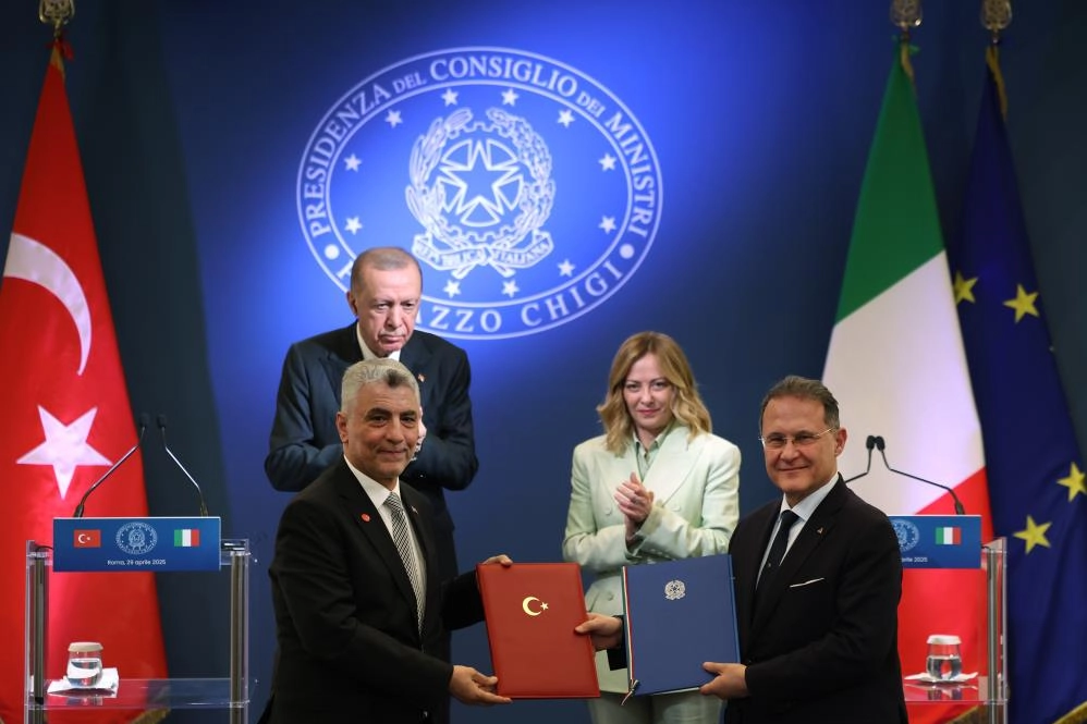 İtalya’nın başkenti Roma’daki tarihi Villa Doria Pamphili rezidansında Cumhurbaşkanı Recep Tayyip Erdoğan ile İtalya Başbakanı Giorgia Meloni eş başkanlığında düzenlenen Türkiye-İtalya 4. Hükümetlerarası Zirvesi sonrasında ortak bildiri yayınlandı. Ortak bildiride, "NATO Müttefikleri ve G20 ortakları olarak Türkiye ve İtalya, bölgesel ve uluslararası konularda yakın iş birliği ve eşgüdümlerini sürdürmeye devam edecektir. Türkiye ve İtalya, Avrupa ve ötesinde uluslararası barış ve istikrara önemli katkılarda bulunmaktadır. Her düzeyde düzenli istişareler yoluyla iş birliklerini geliştirmeyi hedeflemektedirler" denildi. Zirve’nin, Ukrayna-Rusya savaşı, Avrupa güvenlik mimarisi ve uluslararası ticarete ilişkin ortaya çıkan tartışmalar, Gazze'deki vahim durum, tutarlı mukabele ve etkili iş birliği gerektiren düzensiz göç ve iklim değişikliği gibi süregelen sınamalarla bölgesel ve küresel ölçekte önemli gelişmelerin meydana geldiği bir dönemde düzenlendiği hatırlatılan bildiride, "Taraflar, Hükümetlerarası Zirve’nin düzenli olarak tertip edilmesi ve beşinci Zirvenin Türkiye'de toplanması hususundaki mutabakatlarını yinelemişlerdir" denildi. Türkiye-AB ilişkileri Türkiye'nin tüm Avrupa kıtasının istikrarı ve refahına yaptığı katkıları tarafların kabul ettiği ifade edilen bildiride, "Taraflar, Türkiye'nin aday ülke statüsünü de göz önünde bulundurarak AB ile Türkiye arasındaki ilişkilerin geliştirilmesinin önemini vurgulamışlardır. Taraflar bu doğrultuda, Türkiye-AB Vize Serbestisi Diyaloğunun hızlandırılması, göç konusundaki iş birliğinin yenilenmesi ve terörle mücadele iş birliğinin güçlendirilmesi gibi kilit alanlarda somut sonuçlar elde edilmesine yönelik çabalarını koordine etme hususunda mutabık kalmışlardır. Taraflar ayrıca her iki taraf için potansiyel faydalar sağlayacak olan Türkiye-AB Gümrük Birliği'nin güncellenmesine duyulan acil ihtiyacı da vurgulamışlardır" denildi. Ekonomi, ticaret ve sanayi Tarafların, ekonomi ve ticaret konusunda iş birliğini artırma ve bu alanlarda gelişmenin güçlendirilmesini amaçlayan yeni yaklaşımları belirleme ve uygulama hususundaki kararlılıklarını vurguladıkları belirtilen bildiride, "Taraflar, 2024 yılında ikili ticaret hacminin, 30 milyar dolar olan ortak hedeflerini aşmış olmasını memnuniyetle karşılamışlardır. Derinleşen ikili ticari ve ekonomik ilişkileri göz önünde bulundurarak 40 milyar dolar ticaret hacmine ulaşmaya yönelik yeni bir orta vadeli hedef belirlemişlerdir. Taraflar, bu yeni hedefe ulaşmak için birlikte çalışmaya ve bu doğrultuda Üçüncü Ortak Ekonomi ve Ticaret Komisyonu (JETCO) Toplantısını 2025'in dördüncü çeyreğinde Türkiye'de düzenlemeye karar vermişlerdir. Taraflar ayrıca bugünkü Zirve marjında İş Forumu’nun düzenlenmesini memnuniyetle karşılamışlardır" denildi. Tarafların, iki ülke arasındaki doğrudan yatırımların ekonomik ilişkilerinin önemli bir boyutunu oluşturduğu inandığı vurgulanan bildiride, "Bu nedenle doğrudan yatırımların seviyesini arttırmak amacıyla sanayi iş birliği, karşılıklı mutabık kalınan şartlara dayalı teknoloji transferinin teşvik edilmesi ve kilit teknolojilerin sanayide kullanılmasının desteklenmesi yollarıyla da Türk ve İtalyan yatırımcıları daha fazla teşvik etmeye karar vermişlerdir. Taraflar ayrıca dijital teknolojiler, yapay zekâ ve siber güvenlik alanlarında iş birliğini ilerletme isteklerini ifade etmişlerdir" denildi. Ulaştırma Tarafların, ulaştırma koridorlarının hem küresel tedarik zincirlerinin sürdürülmesinde hem de sosyal ve ekonomik kalkınmaya katkı sağlamadaki hayati rolünü kabul ettikleri belirtilen bildiride, "Taraflar, denizcilik alanındaki mevcut ilişkilerinden duydukları memnuniyeti ifade etmişler ve bunları daha da geliştirmeyi taahhüt etmişlerdir. Karayolu taşımacılığının ticari ilişkilerin artırılmasındaki öneminin altını çizen Taraflar, son Kara Ulaştırması Karma Komisyon toplantısının ulaştığı neticeleri tasdik etmişlerdir. Taraflar, iki ülke arasındaki sivil havacılık ilişkilerinin daha da güçlendirilmesi konusunda mutabakata varmışlardır" denildi. Savunma Son NATO Zirvelerinde alınan kararlar ve Stratejik Konsept çerçevesinde, tarafların, başta terörle mücadele olmak üzere bilhassa İttifak’ın Güney Kanadından kaynaklanan tehditler ve çok yönlü sınamalar gibi konularda 360 derecelik yaklaşım temelinde iş birliklerini güçlendirmeye yönelik kararlılıklarını vurguladıkları aktarılan bildiride, "Taraflar, NATO-AB Stratejik Ortaklığını mutabık kalındığı şekilde geliştirme isteklerini ve AB dışındaki Müttefiklerin, bu ortaklığın geliştirilmesi için AB'nin savunma çabalarına muhtemel tam katılımının önemini yeniden teyit etmiştir" denildi. Savunma sanayi Tarafların, Türk ve İtalyan savunma sanayi şirketlerinin son yıllarda başarıyla sonuçlanan ortak projelerine ve bu iş birliğini ilerletme yönündeki siyasi iradeye atıfta bulundukları ifade edilen bildiride, "Taraflar, savunma sanayinin hem mevcut hem de gelecekteki ilişkileri açısından kilit bir rol oynadığını ve bu nedenle bu sektördeki diyalog ve iş birliğini güçlendirmeye devam edeceklerini kabul etmişlerdir. Bu anlayış doğrultusunda Taraflar, 2025 yılında 14. Savunma Sanayi İşbirliği Toplantısını düzenlemeye ve ikili savunma ilişkilerinin seviyesini Müttefiklere örnek teşkil edecek şekilde yükseltmek amacıyla karşılıklı olarak üst düzey ziyaretler ve teknik toplantılar düzenlemeye karar vermişlerdir. Taraflar ayrıca NATO içerisinde savunma sanayi iş birliğini geliştirme ve daha güçlü bir Avrupa savunma sanayiine yönelik ortak çabaları destekleme yönündeki taah