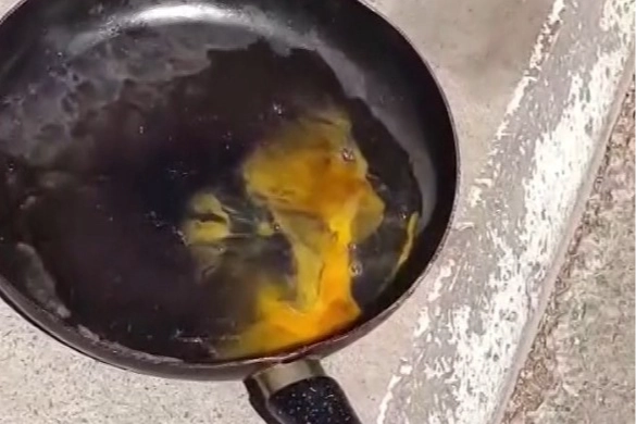 Pendik'te bir esnaf, 40 dereceyi bulan sıcak havayı fırsata çevirdi. Çevredekileri hayrete düşüren görüntülerde kaldırımın ortasına bıraktığı tavada yumurta pişiren vatandaş, sonrasında ise asfaltın kenarına oturarak pişirdiği yumurtayı afiyetle yedi.