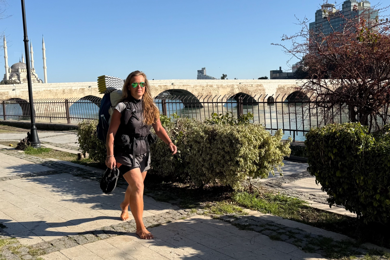 Almanya'nın Gebrazhofen kasabasında yaşayan 41 yaşındaki Sabina Struck, İsrail’in saldırısı altındaki Filistin’e destek vermek ve barış çağrısında bulunmak amacıyla yaklaşık 9 ay önce yürüyüşe başladı. Almanya'dan Kudüs'e uzanan uzun bir yolculuğa çıkan Sabina Struck, güzergahı üzerinde Adana'daki belediyeye ait Taşköprü Konukevi’nde mola verdi. 1 gece mola verdikten sonra Struck, yeniden yola çıktı. Filistin'e destek olmak ve dünyaya barış mesajı vermek amacıyla yollara düştüğünü belirten Struck, sınırları ve kültürleri aşan yürüyüşünün detaylarını İHA’ya anlattı. "Kudüs'e varıp varamayacağımı bilmiyorum" Yolculuğunda 9 ayı geride bıraktığını ifade eden Struck, "Geçen yıl temmuz ayında Almanya'da başladım. Sadece barış için, hem dünya hem de kendim için yürüyorum. Hiçbir planım yok, her şeyin ucu açık. Kudüs'e varıp varamayacağım hakkında hiçbir fikrim yok. Her şey belirsiz, sadece yürüdüğüm bir yol var. Bu yol benim için tüm ülkelerden ve kültürlerden bağımsız" dedi. "Türkiye'de insanlar çok yardımsever" Yol boyunca pek çok güzel insanla karşılaştığını belirten Sabina Struck, "Türkiye'de ve geçtiğim yollardaki insanlar çok yardımsever. Benim bu yolda sevdiğim şey de bu. Benim hedefim varış noktası değil, yolun sadece bu kısmı. Bu yolun tadını çıkarıyorum" diye konuştu. "En uzun barış yolunu yürüyorum" Savaşlardan ziyade dünyaya farklı bir perspektiften baktığını vurgulayan Struck, yürüyüşünün ruhsal boyutuna da değinerek şunları söyledi: "Bulunduğum yerin Türkiye, Avusturya veya Almanya olması benim için önemli değil. Benim için önemli olan her ülkenin bana sunacak bir hediyesi olması. Etrafımda çok fazla barış ve uyum görüyorum. Bazen bir sebebimiz olmaz, hayatınızda sadece bir his uyanır ve bazen eski hayatınıza 'dur' der, kendi yolunuza gidersiniz. Ben en uzun barış yolunu ve en uzun kültür rotasını yürüyorum. Hepimizin içinde barış var, hepimizin içinde sevgi var. İçimizde tüm dünyayı affetmemiz bize çok yardımcı olur. Ruhumuzda ve kalbimizde sadece kendimize aitiz."