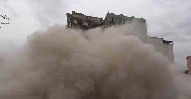Kahramanmaraş’ta depremlerde ağır hasarlı 8 katlı iş merkezinin, kontrollü yıkım çalışması esnasında binanın bir bölümü saniyeler içinde yerle bir oldu. Yıkımı izleyen vatandaşlar da toz bulutuna rağmen o anları cep telefonlarıyla sosyal medya hesaplarından canlı yayınını sürdürdü. Yerel bir gazete muhabiri de çalışma ofisinin yıkılışını izledi.