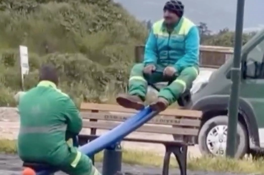 Osmangazi ilçesinde görev yapan temizlik personeli, çalışma sırasında parkta bulunan tahterevalliye binerek kısa süreli eğlendi. O anlar cep telefonu kamerasına yansırken, görüntüler sosyal medyada da ilgi gördü.