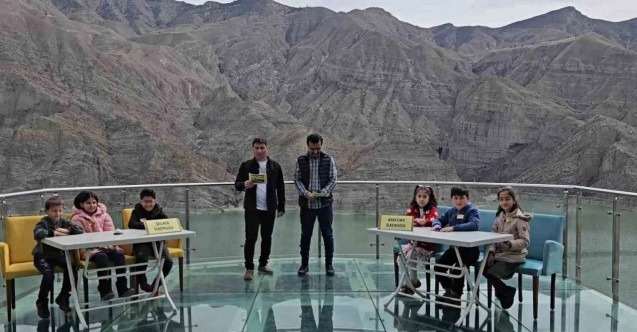 "Tarih Yazan Çocuklar" projesi çerçevesinde, Erzurum’un Uzundere ilçesindeki Tortum Gölü üzerine yaptırılan Türkiye’nin en geniş ve en uzun cam seyir terasında bilgi yarışması düzenlendi.