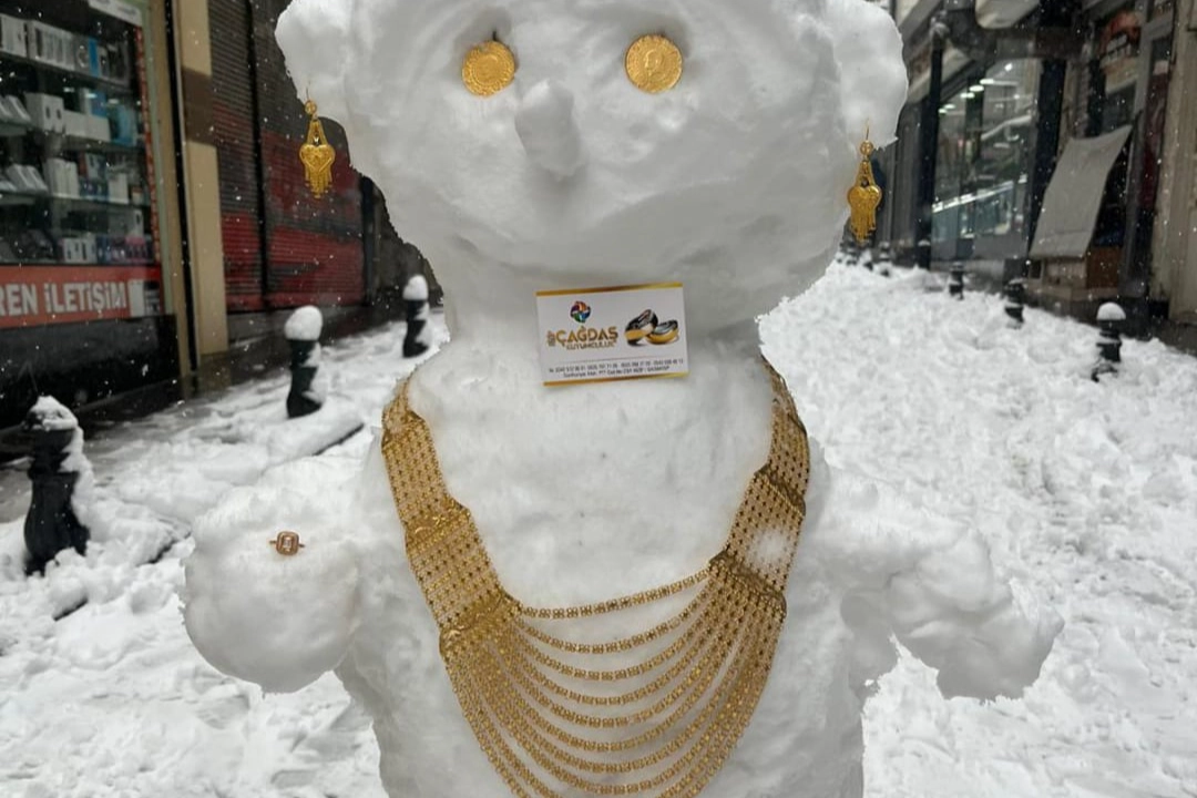 Nizip ilçesinde ise bir kuyumcu, kar yağışı nedeniyle müşteri gelmeyince iş yerinin önüne yaptığı kardan gelini altınlarla süsledi. Boynuna bilezikler ve kolyeler takılan kardan gelin vatandaşların ilgisini çekerken ortaya renkli görüntüler çıktı.