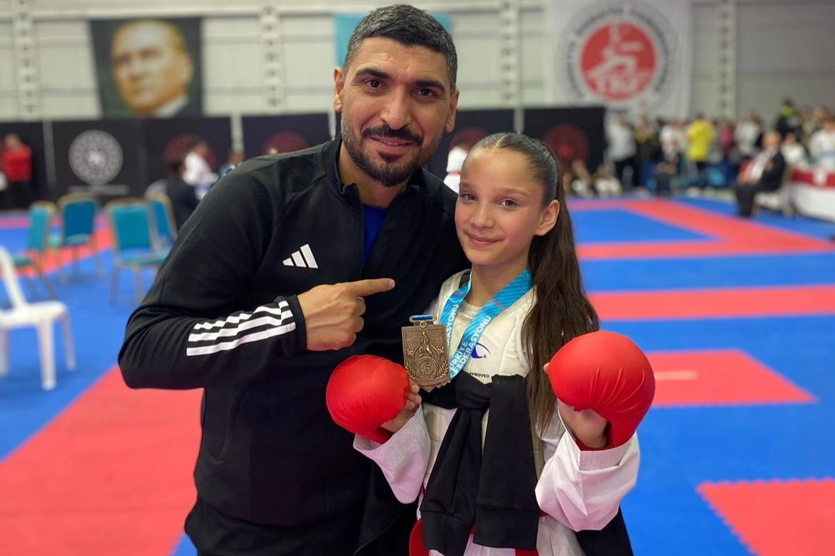 Gaziantep'in Şehitkamil ilçesinde ikamet eden Kıbrıs Ortaokulu 7'inci sınıf öğrencisi Nesibe Nur Şimşek, küçük yaştan itibaren karate filmlerine ilgi duymaya başladı. Okuldaki tüm spor etkinliklerine katılan ve 3 yıl önce okulun beden eğitim öğretmenleri tarafından karate sporuna yönlendirilen Şimşek, kısa sürede önemli başarılara imza attı. Karateye 11 yaşında başlayan ve bu branşta katıldığı ulusal turnuvalarda dereceler elde eden Şimşek, kazandığı başarılarla geçtiğimiz yıl milli formayı giymeye hak kazandı. Yeni başladığı karate sporunda kendini geliştiren Şimşek, 2025 yılında Türkiye karate şampiyonu oldu. Üst üste şampiyonluklar kazandı 2025'te Kocaeli'nde düzenlenen Türkiye Çocuklar Karate Şampiyonası'nda 35 kiloda kazandığı şampiyonlukla Türkiye'yi Karadağ'da temsil etme hakkı kazanan ve katıldığı müsabakada da birincilik elde ederek şampiyon olan Şimşek, 24-29 Mart 2026 tarihlerinde Antalya'da düzenlenen Minik Yıldız Türkiye Şampiyonası'nda 13 yaş 39 kilogram kategorisinde altın madalya kazandı. 5 bin 130 sporcunun katılımıyla rekor düzeyde düzenlenen Karate Şampiyonası'nda Gaziantep'i temsil eden Şimşek, büyük bir başarıya imza attı. 39 kilogram yıldızlar kategorisinde mücadele eden Şimşek, çıktığı tüm karşılaşmaları kazanarak Türkiye Şampiyonu oldu ve spor şehri Gaziantep'i gururlandırdı. Balkan Şampiyonası'nda Türkiye'yi ve Gaziantep'i temsil edecek Elde ettiği bu önemli başarının ardından Şimşek, önümüzdeki dönemde düzenlenecek olan Balkan Şampiyonası'nda Türkiye'yi ve Gaziantep'i temsil etme hakkı kazandı. Genç sporcunun başarısı spor camiasında takdirle karşılandı. Elde ettiği bu önemli başarıyla Milli formayı giymeye hak kazanan Şimşek, Balkan Şampiyonası'nda da Türkiye'yi temsil edecek olan Şimşek, okulun Beden Eğitimi Öğretmeni Mahmut Şahin ve antrenörü Reşit Yavuz'un destekleriyle ara vermeden çalışmalarını sürdürüyor. "Ay yıldızlı bayrağımızı dalgalandırmak istiyorum" Balkan Şampiyonası'ndaki şampiyonluk için ter döken, Türkiye'ye ve memleketi Gaziantep'e yeni bir başarı getirmeyi hedefleyen Şimşek, Balkan Çocuklar Karate Şampiyonası'na yoğun bir tempoyla hazırlanıyor. Altın madalya alarak Türk bayrağını dalgalandırmak istediğini dile getiren Şimşek, en büyük hayalinin ise olimpiyat madalyası olduğunu söyledi. Yeni şampiyonluklara ulaşmak için çalışmalarını sürdürdüğünü belirten Şimşek, "Spora zaten hep ilgi duyuyordum. Arkadaşlarım beni bu spora yönlendirdi. İlk başladığımda bu kadar ilerleyeceğimi hiç düşünmemiştim. Madalya kazandıkça ve başarı elde ettikçe karateye ilgim daha çok arttı ve kendime hep hedefler belirledim. Türkiye derecesi aldıktan sonra daha da ilerlemeye başladım. Katıldığım tüm spor müsabakalarında daha da azmim arttı. Arkadaşlarım bana sürekli destek verdi. İlk başta aslında hiç bu kadar ilerleyeceğimi düşünmemiştim. Türkiye derecelerim var. İki defa birinci oldum. Liglerde ikinci ve üçüncülüğüm var. Gaziantep'te ve bölgede derecem çok. Balkan Çocuklar Karate Şampiyonası'nda da şampiyon olmak, ay yıldızlı bayrağımızı dalgalandırmak istiyorum" dedi. "Öğrencimizle gurur duyuyoruz" Okul Müdürü Ali Osman Tapsız ise, "Nesibe Nur Şimşek, Antalya'da Türkiye Karate Federasyonu'nun düzenlediği organizasyonda Türkiye birincisi oldu. Aslında bu başarısı yeni değil, geçen senede bizlere bu gurur yaşattı. Öğrencimiz 5 bin 130 öğrencinin katıldığı bu büyük turnuvada Türkiye birinciliği elde ettiği için okul idaresi, öğretmenleri ve arkadaşlar olarak çok mutluyuz, gururluyuz. Nesibe'nin Balkan Çocuklar Karate Şampiyonası'nda, olimpiyatlarda ve dünya arenasında kendini göstermesi en büyük hedefimiz olacak. Spor şehri Gaziantep olarak devletimizin sunduğu bu imkanlarla önemli başarılara imza atacağız. Aslında dezavantajlı bir bölgede çalışıyoruz. Nesibe, diğer arkadaşlarına da örnek oldu. Bu bölgenin okullarındaki bir öğrencinin Türkiye şampiyonlukları elde edebileceğini diğer öğrencilere de örnek olarak göstermiş oldu. Bunlar bizim için çok gurur vericidir" şeklinde konuştu. "Nesibe gururumuz oldu" Nesibe Nur Şimşek'in antrenörü Reşit Yavuz da iyi bir sporcu yetiştirdiklerini belirterek, "Nesibe Nur ile 3 yıl önce tanıştık. 3 yıl önce kurs verdiğim Kıbrıs Ortaokulu'nda antrenman yaparken antrenmana Nesibe geldi. Antrenmanda onun ilk böyle yumruk attığında iyi bir sporcu olabileceğini düşündüm. 6 ay sonra götürmüş olduğum Türkiye Şampiyonası'nda milli takım seçmelerine kaldı ve bir sonraki yıl Türkiye Şampiyonu oldu. Geçen yıl milli takımımızı temsil etti. Şu anda yine tekrardan milli takımı temsil edecek. Nesibe, çok başarılı bir çocuk. Gelecekte ise çok daha iyi başarılar elde edebileceğini düşünüyorum" ifadelerini kullandı. "Ülkemizi en güzel şekilde temsil edecek" Gaziantep'ten bir yıldızın doğduğunu belirten Beden Eğitimi Öğretmeni Mahmut Şahin, "Okulumuzda beden eğitimi öğretmenleri ve idare olarak sportif etkinliklere büyük önem veriyoruz. Öğrencimiz Nesibe, disiplinli çalışması ve azmiyle bu başarıyı sonuna kadar hak etmiştir. Bu başarı tesadüf değil, düzenli antrenman ve emeğin bir sonucudur. Nesibe, okul sporlarında ilimizde şampiyon olmuştur. Hafta sonu Hatay'da düzenlenecek grup finallerinde okulumuzu ve şehrimizi temsil edecektir. Nesibe, ileride ülkemizi en güzel şekilde temsil edecek bir karaktere sahiptir" diye konuştu.