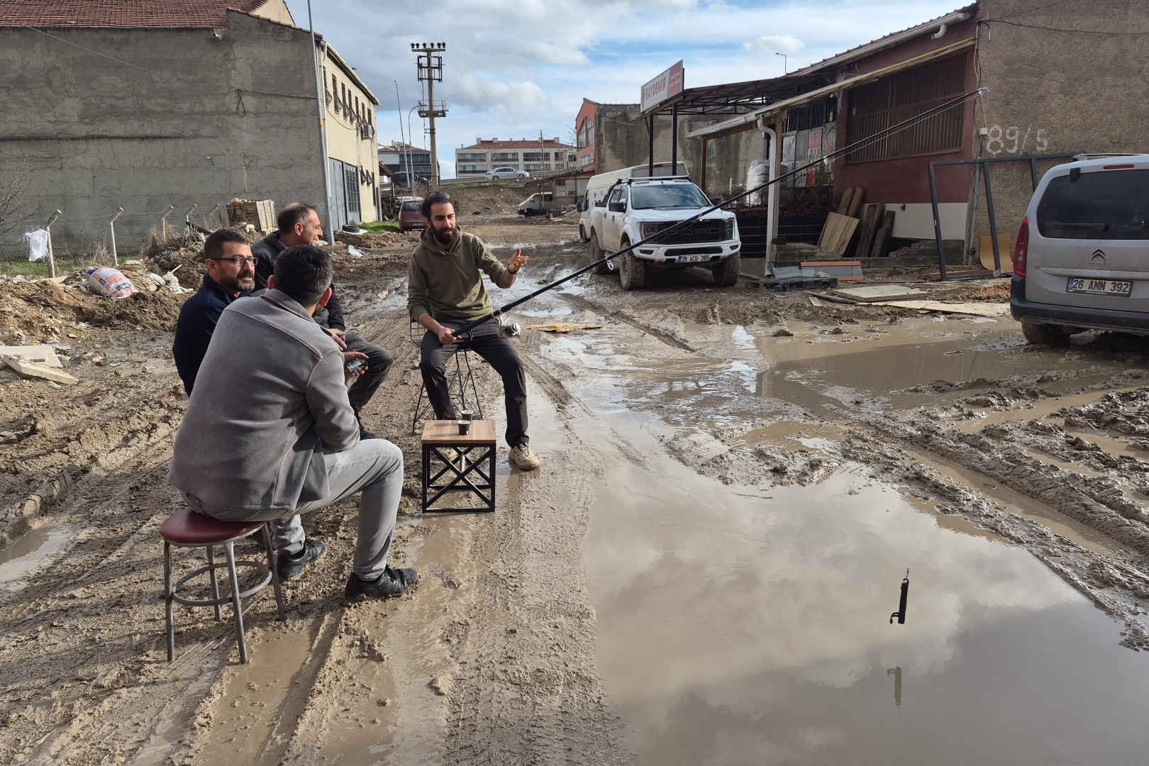 Adeta göle dönen ve çamur içinde kalan bir sokaktaki esnaf, büyük su birikintisinin başına geçip olta ile balık tutuyormuş gibi kameralara poz verdi. Baksan Sanayi Sitesi'nin yol sorunu sürüyor. Çok sayıda esnafın ilgili kurumlara müracaat etmesi ve konu sıklıkla kamuoyu gündemine taşınmasına rağmen bölge için hala çözüm üretilmiyor. Bu sebeple hem esnaf hem de vatandaş mağduriyet yaşıyor. Özellikle yağış sonrası adeta göl ve bataklığa dönen Baksan Sanayi Sitesi, şehre yakışmayan bir görüntü oluşturuyor. Göle dönen sokakta oltayla balık tutmaya başladılar Çözümsüz kalan sorun, sanayi sitesinin 89'uncu bloğundaki bir grup esnafın mizah konusu oldu. Çevre esnafından Erman Rat, yolda oluşan büyük bir su birikintisinin başına geçip olta ile balık tutuyormuş gibi kameraya poz verdi. İnternette paylaşılan fotoğraf sosyal medyada gündem oldu. İhlas Haber Ajansı (İHA) ekibi konuyu haberleştirmek için adrese gittiğinde bu defa hep birlikte kadraja giren esnaf grubu, Baksan Sanayi Sitesi'nin 'balık piyasası' hakkında sohbet ederek ironi yaptı. "Artık burada rahatça balığımızı avlayıp, tezgahlara götürüp satabiliriz" Bu mizahın aslında önemli bir soruna değindiğini söyleyen esnaf Erman Rat, "Burada göl gibi bir yerimiz var. Biz de burada balık avlayalım; bir daha da uzaklara, şehir dışına gitmeye gerek kalmaz gibi düşündük. Artık burada rahatça balığımızı avlayıp, tezgahlara götürüp satabiliriz. Tabii bu işin mizahı. Her sene belediye tarafından burada kazılar yapılıyor ve yollara mıcır dökülüyor. Mıcırlar ise kış boyunca bu şekilde manzaraları ve görüntüleri ortaya çıkarıyor. Bu da aşırı derecede sıkıntı oluşturuyor" dedi. "Yani bizi buraya attılar, 'Çamurun içinde yaşayın, biz sizi unuttuk' dediler" Bir depo sahibi olan Erkan Bozkurt, "Araçlar buraya girdiğinde tekerlekler suyun içine batıyor. Bahsettiğim yer sadece giriş kısmı. Daha ileride ise maalesef balçığa dönen bir çamurumuz var. Yani bizi buraya attılar, 'Çamurun içinde yaşayın, biz sizi unuttuk' dediler. Biz kendi imkanlarımızla birkaç sefer buraları temizlettik ama yine de olmuyor. Buranın asfaltlanması lazım çünkü ne müşterilerimiz geliyor ne biz kendimiz buradan rahatça çıkamıyoruz" şeklinde konuştu. "İlla ki yapan olur dedik ama üzerinden 4-5 sene geçti ve hiçbir icraat yok" Yaklaşık 5 yıl önceden Konya'dan gelen ve şu anda Baksan Sanayi Sitesi'nde çalışan Berat Serter, karşılaştığı manzaranın kendisini şaşırttığını belirtti. Eskişehir'in aksine Konya'da böyle görüntülere rastlamadığını ifade eden Serter, şunları söyledi: "Bu rezaleti çekiyoruz ve değişen hiçbir şey olmadı. Her gelen bir inşaat yaptı, kazdı, üstünü sıvadı ama çukurdan, çamurdan, tozdan geçilmiyor. Burası yazın da kışın da aynı şekilde. Araba yıkıyoruz ama hiçbir şeye faydası olmuyor. Buradan çıkana kadar toz ve duman içinde kalıyoruz. İlla ki yapan olur dedik ama üzerinden 4-5 sene geçti ve hiçbir icraat yok." "Müşterilerimiz arabayı asfalta bırakıp buraya yürüyerek geliyorlar" Sanayi sitesinde personel olan Muhammet Özcan, "Müşterilerimiz buraya girmeye korkuyor. Arabayı asfalta bırakıp yürüyerek geliyorlar. 'Abi araba nerede?' dediğimizde, 'Karşı sokakta. Caddeye giremiyoruz, yollarınız bozuk' diyorlar. Sonra yetkililer 1-2 ay sonra geliyorlar ama mıcır atıyorlar. Bir hafta sonra yağmur yağdığında ve buradan arabalar geçtiği zaman her şey geri çöküyor. Asfalt ve beton lazım. Yetkililerimiz en kısa sürede yollarımızı yapsınlar, hem biz hem de müşteriler mağdur olmayalım" şeklinde konuştu. "Arabalarımızın alt takımları sürekli bozuluyor" Hüseyin Şentürk ise, "Burada bir arıza bakımcımız var. Aracımızı her ay ona götürüp tamir ettiriyoruz. Yollar o derece kötü. Buraya girmek çok sıkıntılı ve arabaların altı yere değiyor. Arabalarımızın alt takımları sürekli bozuluyor" diye konuştu.