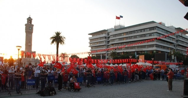 15 Temmuz Demokrasi ve Milli Birlik Günü, İzmir’de binlerce kişinin katılımıyla anılmaya başlandı. Kadın, erkek, genç, yaşlı çok sayıda kişi ellerinde Türk bayraklarıyla Konak Meydanı alanını doldurdu.
