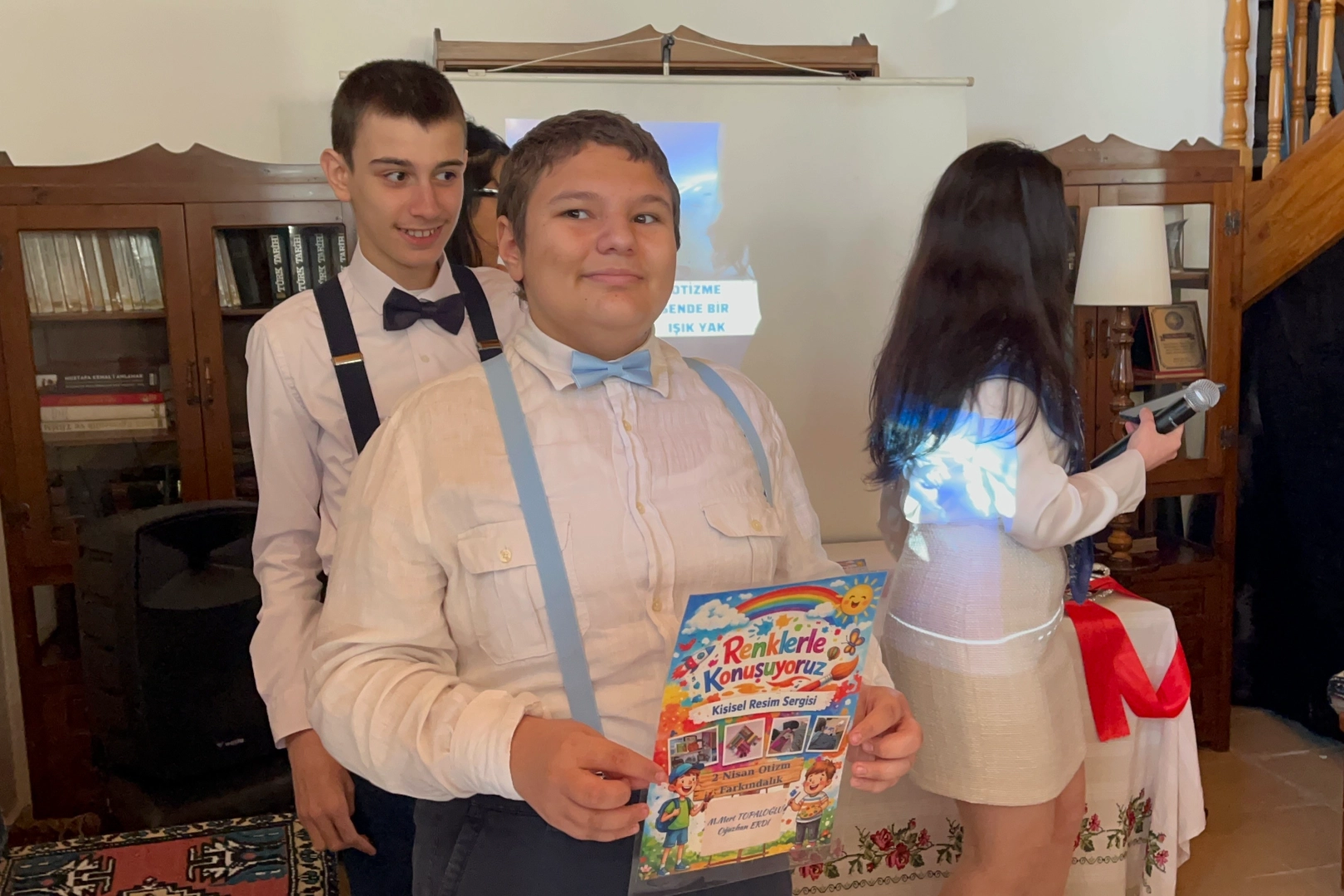"Zorlandık ama vazgeçmedik" diyerek duygularını paylaşan Muhammed Mert ve Oğuzhan, hazırladıkları eserlerle beğeni topladı. Açılışta piyano başına geçen Muhammed Mert ise sergiye ayrı bir renk kattı. Akçakoca Özkök Kültür ve Sanat Evi'nde düzenlenen, "Renklerle Konuşuyoruz" adlı serginin açılışına Akçakoca Kaymakamı Hacı Arslan Uzan, kurum müdürleri, siyasi parti temsilcileri ve davetliler katıldı. Otizmli gençler Muhammed Mert Topaloğlu ve Oğuzhan Erdi tarafından 2 Nisan Dünya Otizm Farkındalık Günü dolayısıyla büyük bir özenle hazırlanan eserler katılımcıların ilgisine sunuldu. "Farklı olmanın güzel olduğunu göstermek istiyoruz" Serginin açılışında konuşan Muhammed Mert Topaloğlu, heyecanını dile getirerek çalışmalarını katılımcılarla paylaşmaktan duyduğu mutluluğu ifade etti. Topaloğlu, sergideki eserlerin büyük bir emeğin ürünü olduğunu vurgulayarak, "Boyadık, kestik, yapıştırdık. Denedik ve öğrendik. Bazen zorlandık ama vazgeçmedik. Bu süreçte bize yol gösteren öğretmenlerimize ve her zaman yanımızda olan ailelerimize teşekkür ederiz. Bu sergide farklı olmanın güzel olduğunu göstermek istiyoruz. Bizi yalnız bırakmayan herkese teşekkür ederim" dedi. Konuşmaların ardından protokol üyeleri, açılış kurdelesini kestikleri sergiyi gezerek özenle hazırlanan resimleri tek tek inceledi. Etkinlik, sergiyi gezen davetlilere Muhammed Mert Topaloğlu tarafından sunulan piyano resitaliyle sona erdi.