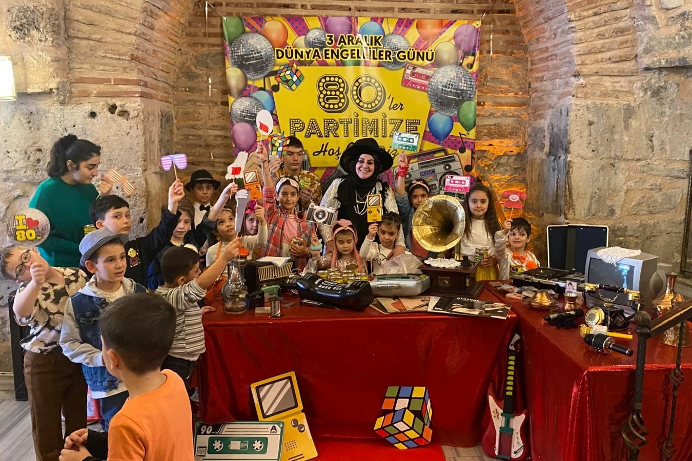 Down sendromlu, otizmli ve zihinsel engeli bulunan öğrenciler, Ördekli Kültür Merkezi'nde gerçekleşen etkinlikte unutulmaz bir gün yaşadı. Özel eğitim öğretmeni Ümmühan Keyif Koç, özel gereksinimli öğrencilerinin moral ve motivasyonunu artırmak için her yıl farklı bir konseptle etkinlik hazırladığını belirterek, bu yıl 80'ler temasında bir program yaptığını söyledi. Öğrenciler, aileleriyle birlikte katıldıkları etkinlikte kostümler giyip oyunlar oynadı, hazırlanan dekorlarda fotoğraf çekildi. İkramlar, hediyeler ve çeşitli aktivitelerin yer aldığı programda öğrenciler doyasıya eğlendi. "Ben de özel çocuk annesiyim" Kendisinin de özel çocuk annesi olduğunu ifade eden Ümmühan Keyif Koç, "3 Aralık Dünya Engelliler Günü dolayısıyla özel gereksinimli çocuklarıma güzel bir program hazırladım. Partimizin konsepti 80'ler. Gördüğünüz gibi bütün öğrencilerim 80'ler gibi kostümler giyindiler. İkramlarımız var, hediyelerimiz var, eğlencelerimiz var. Eskiye, 80'lere dair ait bütün o dönemin televizyonlarını koyduk. Çocuklar onlarla birlikte resimler çekeceğiz, eğleneceğiz. Güzel bir gün geçireceğiz inşallah. Her sene bir konseptle 3 Aralık Down Sendromlular Günü'nü kutluyorum ya da 3 Aralık Dünya Engelliler Günü hangisine uygunsa evlatlarımız, çocuklarımız ile beraber yapıyoruz bu programı. Bunlar benim kendi öğrencilerim. Hepsinin okulları ayrı ayrı yerlerde, çünkü yaşları aynı değil. Kimi 2. sınıf, kimi 3. sınıf öğrencisi, liseye giden öğrencilerimiz var. Her düzeyde öğrencilerimiz var. Anneleriyle birlikte geldi herkes. Veliler çok mutlu oluyorlar. Şöyle söyleyeyim, bu programı yapmaktaki asıl amacım, benim de özel gereksinimli bir çocuğum var. Yani burada hem çocuklar eğleniyor hem anneler eğleniyor. Aslında biz biraz kendimizi şarj etmek için güzel oluyor. Velilerimden de güzel, olumlu tepkiler alıyorum" şeklinde konuştu.
