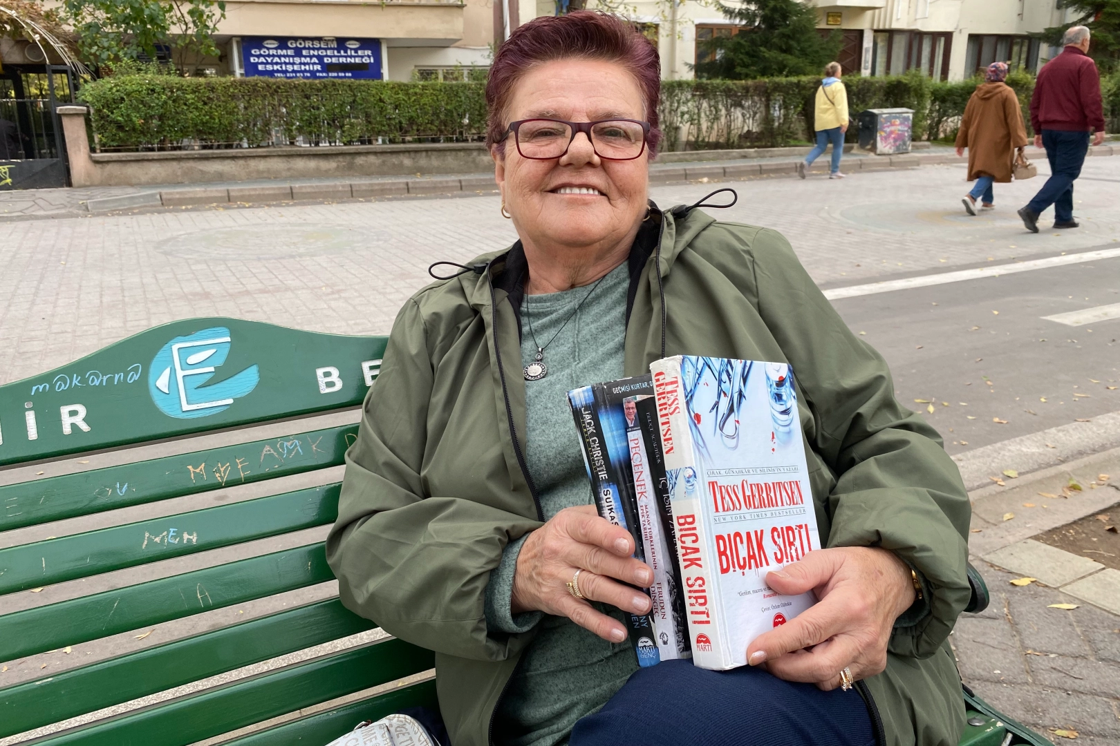 Emekli vatandaş Nurhan Çallıçubukcuoğlu, çocukluğundan bu yana kitap okumayı çok seviyor. Akşam kendisine ayıracağı zamanı sosyal medyada dolaşmak veya televizyon izlemek yerine daha farklı bir şekilde değerlendiren Çallıçubukcuoğlu, radyosunu açıp en az 300 sayfa kitap okuyor. Tek gözü hiç görmemesine rağmen okumaktan vazgeçmeyen emekli kadın, aynı zamanda 'dijital detoks' yaparak hem zihinsel hem de ruhsal sağlığını destekliyor. "Küçüklüğümden beri kitap okumayı çok seviyorum" Bir dönemler günde 500 sayfayı rahatlıkla bitirdiğini söyleyen Nurhan Çallıçubukcuoğlu, "Şimdi yaş durumumdan dolayı ve bir gözüm rahatsız olduğu için eskisi kadar okuyamıyorum. Sağ gözüm doktor hatasından dolayı tamamen işlevini yitirdi, hiç görmüyor. Bu yüzden kendimi fazla zorlayamıyorum ama yine de günde en az 250-300 sayfa okuyorum. Küçüklüğümden beri kitap okumayı çok seviyorum. 66 yaşındayım ve yaklaşık 10 yaşlarındayken kitap okumaya başladım" şeklinde konuştu. "Radyomu açıp kitabımı elime alırım, ondan sonra dünya yansa duymam" Sosyal medyada pek vakit geçirmediğini anlatan Çallıçubukcuoğlu, "Onun yerine kitap okumayı ve radyo dinlemeyi tercih ediyorum. Akşam olduğunda saat 23.00'te radyomu açıp kitabımı elime alırım, ondan sonra dünya yansa duymam. Hiçbir şey düşünmem, tamamen kitabın konusuna dalarım. Ben kitabı sadece okumuyorum, aynı zamanda yaşıyorum. Kitaptaki karakterlerle bütünleşiyorum, kendimi onlardan bir parça gibi hissediyorum. Uyurken de okuduklarımın detaylarını düşünüyorum" ifadelerini kullandı. "Şu anda 1 kitabı en fazla 3 günde bitiriyorum" Kitaplarını 2'nci el aldığından bahseden Çallıçubukcuoğlu, sözlerine şöyle devam etti: "Burada değişim yapan yerler var, aldığım ve okuduğum kitapları oraya götürüyorum. Onlar yarı fiyatına geri alıyor, ben de o parayla yeni kitaplar alıyorum. Bu yerlere gittiğimde, 'Hiç almayacağım' dediğim gün bile en az 4-5 kitap alıp çıkıyorum. Şu anda 1 kitabı en fazla 3 günde bitiriyorum." "Sosyal medya asosyalleştiriyor" Nurhan Çallıçubukcuoğlu, "Sosyal medya sosyalleşmek için değil, beyin yıkamak için. Gençleri tamamen asosyalliğe yöneltiyor. Telefona kilitleniyorlar, etraflarından ve dünyadan tamamen kopuyorlar" diyerek gençlere kitap okumalarını tavsiye etti.