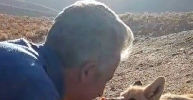 HAKKARİ (İHA) – Hakkari’nin Yüksekova ilçesinde yaşayan Mehmet Duru isimli vatandaş, aç kalan tilkiyi elleriyle besleyerek su verdi.
