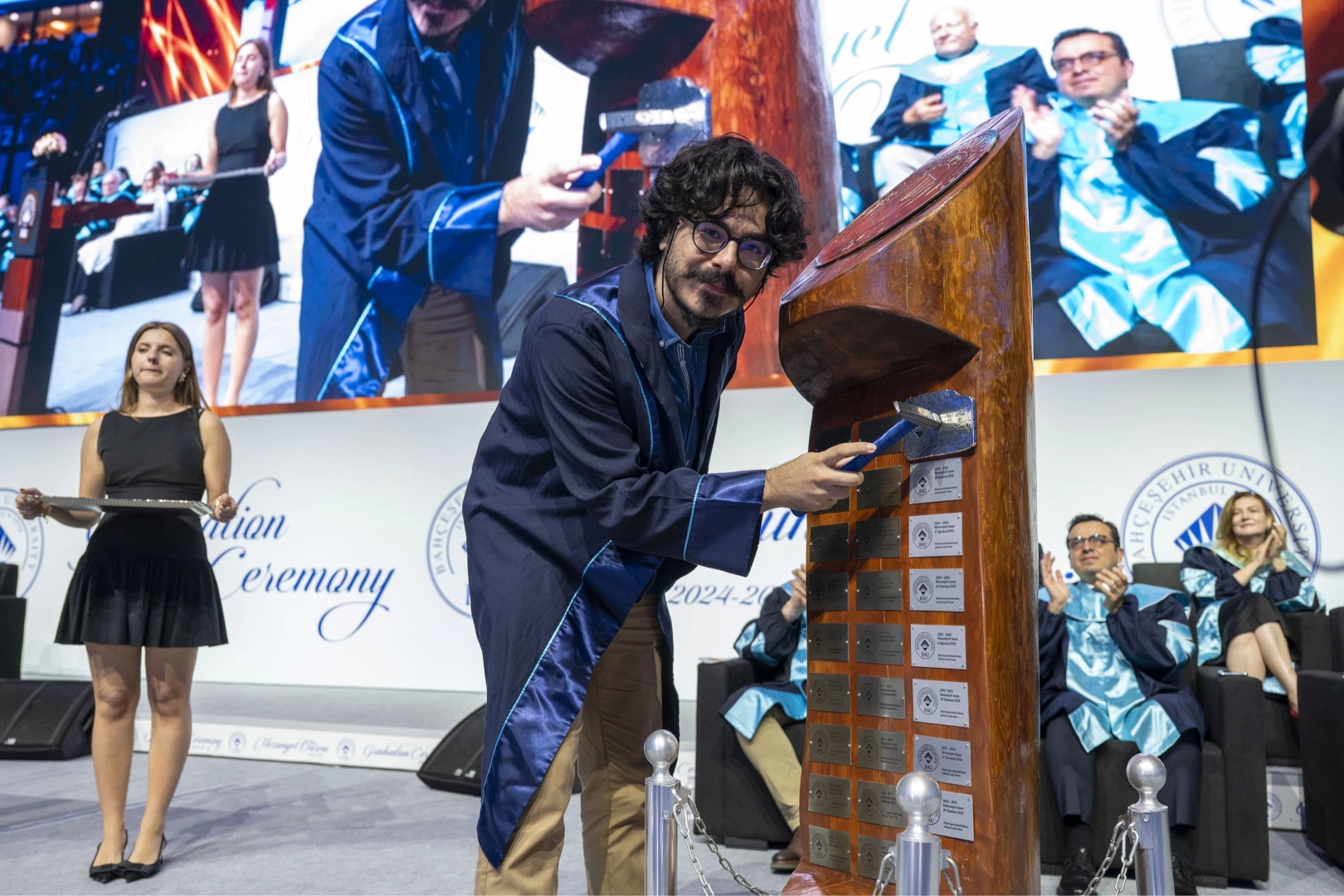 BAU’da her yıl birinci olan öğrenciye verilen "Altın Beyin" ödülünü, BAU Global Başkanı Enver Yücel’in elinden alan Serçe, dünyanın saygın üniversitelerinden Cambridge’den yüksek lisans kabulü almayı başardı. BAU Global eğitim ağı üyesi Bahçeşehir Üniversitesi’nin, 2024-2025 yılı mezuniyet töreni, Sinan Erdem Spor Salonu’nda gerçekleştirildi. Yaklaşık 6 bin öğrencinin kep atma heyecanını yaşadığı törene Bahçeşehir Üniversitesi Mütevelli Heyeti ve BAU Global Başkanı Enver Yücel, BAU Mütevelli Heyeti Başkanvekili Hüseyin Yücel, BAU Rektörü Prof. Dr. Esra Hatipoğlu, fakülte dekanları, akademisyenler ve öğrencilerin yakınları katıldı. "Hedefiniz muassır medeniyetlerin üstüne çıkmak olsun" Saygı duruşu ve İstiklal Marşı ile başlayan törende konuşan BAU Mütevelli Heyeti Başkan Vekili Hüseyin Yücel, "Hayatınız boyunca ne yaparsanız yapın, bir kırmızı çizginiz olsun: O da Gazi Mustafa Kemal Atatürk’ün bizlere gösterdiği ‘Muasır medeniyetler seviyesinin üzerine çıkma’ hedefi doğrultusunda yılmadan, yorulmadan çalışmak olsun. Bu hedef, bir dönemin değil, her dönemin yol haritasıdır. O çizgi, sizi hem bireysel hem toplumsal olarak daha yükseğe taşıyacak en güçlü rehberdir." dedi. Öğrencilere toplum için çalışmayı tavsiye eden Yücel, "Lütfen hayatı sadece kendi başarınız etrafında kurgulamayın. ‘Toplum için ne yapabilirim? İnsanlık için nasıl fayda sağlayabilirim?’ diye sorun kendinize. Çünkü gerçek başarı, başkalarının hayatına dokunduğunuzda başlar." diye konuştu. BAU’nun "The Impact" gururu vurgusu BAU Rektörü Prof. Dr. Esra Hatipoğlu öğrencileri tebrik ederek BAU’nun uluslararası derecelendirme kurumu Times Higher Education (THE) Impact Rankings 2025 başarısına vurgu yaptı. Hatipoğlu, "Dünya 59’unsu olarak çok önemli bir başarıya imza attık. Bu başarı, üniversitemizin küresel düzeydeki vizyonunun, kararlılığının ve sürdürülebilir kalkınma alanındaki etkinliğinin tescilidir. Bu sıralamada ayrıca; cinsiyet eşitliğinde dünya 2’ncisi, nitelikli eğitimde dünya 7’ncisi; barış, adalet ve güçlü kurumlar alanında dünya 50’ncisi olmamız, üniversitemizin bilim ekosistemine katkı sağlarken, toplumları dönüştüren bir etki oluşturduğunu da göstermektedir." dedi. Birinciye altın beyin ödülü Konuşmaların ardından üniversitede dereceye giren öğrenciler anons edildi. BAU’da bu yılın birincisi yüzde 60 görme engeli bulunan Bahçeşehir Üniversitesi İktisadi, İdari ve Sosyal Bilimler Fakültesi Psikoloji Bölümü’nden Halid Oğuz Serçe oldu. İkinciliği Eğitim Bilimleri Fakültesi İngilizce Öğretmenliği bölümünden Habib Sundos Abdul Kader, üçüncülüğü ise İletişim Fakültesi’nden İletişim ve Tasarım bölümünden Sofiya Khajimetova kazandı. Serçe’ye ödülünü BAU Global Başkanı Enver Yücel verdi. Eğitim hayatı başarılarla dolu BAU’nun bu yılki birincisi Halid Oğuz Serçe, başarılarıyla adından söz ettiriyor. Aslen Aydınlı, biyoloji öğretmeni bir baba ve ev hanımı annenin oğlu olan Halid Oğuz Serçe’nin doğuştan yüzde 60 görme engeli bulunuyor. Serçe’nin gözlük kullanmasına rağmen ders çalışırken yazıları görebilmek için çok yakından bakması, bilgisayarındaki harfleri büyüterek okuması gerekiyor. Ancak Halid Oğuz Serçe, görme sorunlarına rağmen engel tanımayarak eğitim hayatında önemli başarılara imza attı. Okul başarısı sayesinde Uğur Okulları Aydın Kampüsü’nde yüzde yüz burs almayı başaran Serçe, 2020 yılında girdiği üniversite sınavından da TYT alanında Türkiye şampiyonu oldu. YKS TYT’de birinci, eşit ağırlıkta ise Türkiye ikincisi olan Serçe, tam bursla kayıt yaptırdığı Bahçeşehir Üniversitesi İktisadi, İdari ve Sosyal Bilimleri Fakültesi Psikoloji bölümüne devam ederken yan dal yaparak "Moleküler biyoloji ve genetik" bölümüne de kayıt yaptırdı. Serçe, iki farklı bölüm okumasına ve görme engeline rağmen 2025 yılındaki BAU mezunları arasında da birinci oldu. Okulunu birincilikle bitiren Serçe, İngiltere’deki dünyanın en saygın üniversitelerinden olan Cambridge Üniversitesi’nden yüksek lisans için kabul almayı da başardı. Hedef ve disiplin başarı getirdi Öğrenim hayatında istikrarlı başarılara imza atan Serçe, birincilikleri getiren motivasyonunu ve hedeflerini anlattı. Serçe başarısında, sinir bilimci olma hedefini lisedeyken belirlemesinin ve ailesinin desteğiyle edindiği düzenli çalışma bilincinin etkili olduğunu ifade ederek "Ailem ders çalışmam için beni çok teşvik etti. Bana baskı yapmadan neden ders çalışmam gerektiğini anlattı. Bu sayede erken yaşlarda, ders çalışma disiplinim oluştu. Bir de ben hedefimi lisede, 10’uncu sınıfta belirlemiştim. Ne yapmak istediğimi çok erken anladım. ‘Ben sinir bilimci olacağım" diyordum. Bu da bana büyük bir motivasyon sağladı. Bu anlamda üniversite adaylarının hedeflerinin belirlemelerinin önemli olduğunu düşünüyorum." "Çok güzel çalışmalar yaptığım arkadaşlarım var" Türkiye birincisi olarak vakıf üniversitesi tercihiyle ilgili de değerlendirmelerde bulunan Serçe, şunları söyledi: "Hedefim sinir bilim alanında ilerlemek oluğu için psikoloji bölümünü tercih ettim. Bahçeşehir Üniversitesi’nde psikoloji bölümünde önemli hocalar olduğunu görmüştüm. Sinir bilimi hedeflediğim için okulda psikoloji laboratuvarı bulunması da tercihimde önemli etkenlerden oldu. Ayrıca, moleküler biyoloji ve genetik bölümünü de aynı anda okuma olanağı vardı. Bunları düşünerek üniversiteyi seçtim. Burslu olarak bir vakıf üniversitesinde okurken yalnızlık çekeceğimi, proje çalışmalarında arkadaş bulmakta zorlanacağımı söyleyenler olmuşt