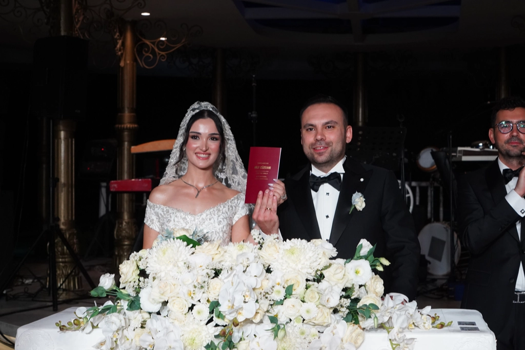 Örnek ev sahipliği yapan Enderer ve Sevim aileleri konuklarını kapıda karşıladı. Havuzbaşı’nda yapılan olan davete alkışlar arasında giriş yapan çiçeği burnunda çiftin heyecanı görülmeye değerdi. Damat bey’in şahitlerini Furkan Enderer, Batuhan Pehlivan, Irmak Pınarlıyayla yaparken Gelin hanımın şahitleri ise Hande Taş, Şila Önder ve Abdullah Sevim oldu. Berkan-Ayşenur Enderer çifti resmi imzaların ardından evlilik cüzdanı ile poz verdi. Gecenin açılış dansını eşli giriş dans olarak yapan genç çift herkese böyle bir mutluluk dilerken balayı için Maldiv’leri tercih etti.