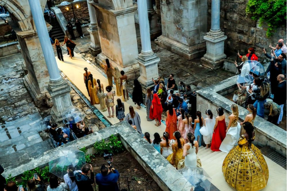 Arso Group resmi sponsorluğunda sekizincisi düzenlenen Antalya Fashion Week (AFW) kapsamında antik Roma’nın izlerini taşıyan Hadrian Kapısı’nda özel bir podyum kuruldu. Özel davetli 250 kişiyle yerli ve yabancı basın mensuplarının izlediği defilede ünlü moda tasarımcısı Tuba Ergin, couture vizyonunun en görkemli yansıması olan "Gilded Symphony" koleksiyonunu sergilendi. Konuklar, yağan yağmura rağmen gerçekleştirilen defileyi kendilerine dağıtılan şemsiyelerin altında izlediler. Halka açık kısımda ise yüzlerce Antalyalı defileyi takip etti. Zamansız estetik anlayışıyla öne çıkan Tuba Ergin koleksiyonu; Antik Roma’dan ilham alarak romantik, drapeli helenistik formları zırh benzeri detaylarla buluşturdu. Altın dokunuşlar, dokunsal zenginlikte kumaşlar ve tarihsel referanslarla bezeli siluetler, geçmişin mitolojik gücünü bugünün lüks anlayışıyla buluşturdu. Sanat, moda ve tarihin önemli bir buluşmasına ev sahipliği yapan defilede ünlü oyuncu Pınar Altuğ Atacan da podyumda yürüdü. Tarihi yapıyla bütünleşen özel bir tasarım sunan Pınar Altuğ Atacan, konuklardan büyük alkış aldı. Defilenin sonunda Pınar Altuğ Atacan ile konuklarını selamlayan Tuba Ergin, tarihi yapıda unutulmaz bir defileye imza attı. Antalya Fashion Week, Antalya Valiliği’nin destekleriyle ve EMY Organizasyon imzasıyla, 5 gün boyunca kentin en özel noktalarında gerçekleşen defilelerle moda, sanat ve tarihi bir araya getirdi. Yerli ve yabancı birçok tasarımcının koleksiyonlarını sunduğu bu uluslararası etkinlik, Antalya’yı dünya moda takviminde güçlü bir konuma taşıdı.
