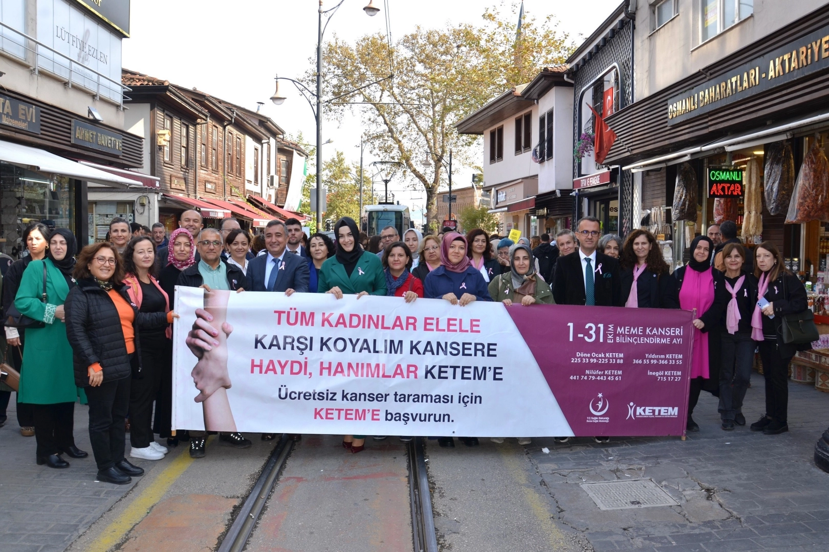 Yürüyüşün ardından şehrin merkezi noktalarından olan Tophane surlarına meme kanserinin simgesi olan dev ‘Pembe kurdele' asıldı. Sağlık Bakanlığı tarafından ülke genelinde yürütülen 1-31 Ekim Meme Kanseri Farkındalık Ayı etkinlikleri kapsamında gerçekleştirilen etkinlikte Cumhuriyet Caddesi'nden Zafer Meydanı'na doğru yoğun katılımla gerçekleşen bir yürüyüş yapıldı. Bursa Büyükşehir Belediyesi Bandosu'nun marşlarıyla eşlik ettiği yürüyüşe; İl Sağlık Müdürlüğü Halk Sağlığı Hizmetleri Başkanı Dr. İrfan Oğuz, Kamu Hastaneleri Başkanı Dr. Melike Savaş, sağlık çalışanları, sivil toplum kuruluşları, kanser dernekleri ve öğrenciler katıldı. Vatandaşların yoğun ilgiyle takip ettiği etkinlikte, lise öğrencileri ellerinde tuttuğu meme kanserinin simgesi olan dev ‘pembe kurdele' ile cadde boyunca yürüyüşe eşlik etti.