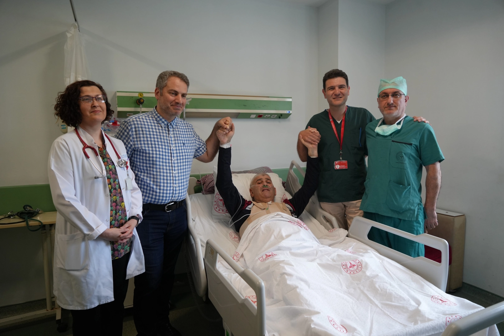 Literatüre göre bu özellikteki vaka, dünyada bildirilen 3. vaka, Türkiye'de ise yapılan ilk operasyon olma özelliğini taşıyor. Samsun'da yaşayan evli ve bir çocuk babası 52 yaşındaki Murat Şanlıer, beyne kan sağlayan kan damarlarının tıkanıklığı olarak adlandırılan 'moyamoya hastalığı' ve her iki şah damarı tıkanıklığı ile Samsun Eğitim ve Araştırma Hastanesi'nde ameliyata alındı. Hastaya çalışan kalpte pompa destekli üç damar koroner bypass ameliyatı başarıyla yapıldı. Kalp ve Damar Cerrahisi Kliniği’nde gerçekleştirilen ve tıp literatürüne örnek olacak nitelikteki operasyon, Samsun Üniversitesi Tıp Fakültesi Kalp ve Damar Cerrahisi Anabilim Dalı Öğretim Üyesi Dr. Öğr. Üyesi Emrah Ereren ve Opr. Dr. Hüseyin Ağırbaş tarafından başarıyla tamamlandı. Moyamoya hastalığına sahip ve her iki internal karotis arterinde tam tıkanıklık bulunan hastaya, çalışan kalpte pompa destekli üç damar koroner bypass cerrahisi uygulandı. Anestezi süreci ise Anestezi Uzmanı Dr. Şenay Canikli Adıgüzel tarafından yönetildi. Nörolojik kayıp yaşanmadı Yüksek felç riski taşıyan bu özel hasta, ameliyat sonrası sağlığına kavuşurken, nörolojik olarak da herhangi bir inme (felç) gelişmeden iyileşti. Söz konusu hastaya, üç yıl önce Samsun Üniversitesi Tıp Fakültesi Beyin ve Sinir Cerrahisi Kliniği’nde Doç. Dr. Vaner Köksal tarafından indirekt beyin damar bypass operasyonu da gerçekleştirilmişti. "Kalp akciğer makinesinde çalışan kalpte bypass tekniğiyle 3 damarına bypass yaptık" Kalp ve Damar Cerrahisi Anabilim Dalı Öğretim Üyesi Dr. Öğr. Üyesi Emrah Ereren, "Hastanın 2 şah damarı tıkalıydı. 2 yıl önce yapılan ameliyat ile beyin damarlarına bir bypass uygulanmış ve bu kan akışını bir miktar arttırmıştı. Bu tarz bir hasta bizim literatür incelememize göre dünyada üçüncü, Türkiye’de ilk hasta. Ameliyattan sonra en korktuğumuz şey bir felç durumu geçirmesiydi. Bunlara engel olmak için biz kalp akciğer makinesinde çalışan kalpte bypass tekniğiyle 3 damarına bypass yaptık. Kalbi hiç durdurmadık. Tansiyonu 100’ün üzerinde tutmak için elimizden geleni yaptık. Ameliyat sonrasında şu anada herhangi bir sekelimiz yok. Çok rahat hareket edebiliyor" dedi. "Bu hastalık 300 binde bir görülen bir hastalık" Beyin ve Sinir Cerrahisi Uzmanı Doç. Dr. Vaner Köksal, "Yaklaşık 2 buçuk yıl önce beynin beslenemeyen kısmı için indirekt bypass ameliyat metodunu uygulayarak, beynin beslenmeyen kısmın beslenmesi için ameliyat gerçekleştirmiştim. Takip sürecinde beynin o kısmında yeni damarlar oluştuğunu fark etmiştim. Aynı hastada kalp kaybı ile ilgili problemler yaşayınca bir kalp ameliyatı gerektiği zaman, normalde beyin damarları tıkalı bir hastaya kalp ameliyatı gerçekleştirmek çok riskli oluyor. Bu riskleri daha önce geçirmiş olduğu ameliyat azaltmış oldu. Bu hastalık 300 binde bir görülen bir hastalık. Nadir olduğu için çözümler çok önemli. Türkiye’de ilk kez böyle bir çözüm uygulanmış oldu" diye konuştu. "Yolunda gitmeyen herhangi bir sıkıntı olmadı" Anestezi Uzmanı Dr. Şenay Canikli Adıgüzel ise "Moyamoya hastasında normalde beyinde kan dolaşımında sıkıntı olduğu için açık kalp cerrahi gerçekleştirebilmek için girilen kalp akciğer makinesi normalde beyin kan akımıyla ilgili sıkıntılar oluşturabilecek bir durum. Ortalama ameliyat 5 saat kadar sürdü. Bunun bir kısmı pompa dediğimiz kalp akciğer makinesinde gerçekleştirdik. Yolunda gitmeyen herhangi bir sıkıntı olmadı" şeklinde konuştu.