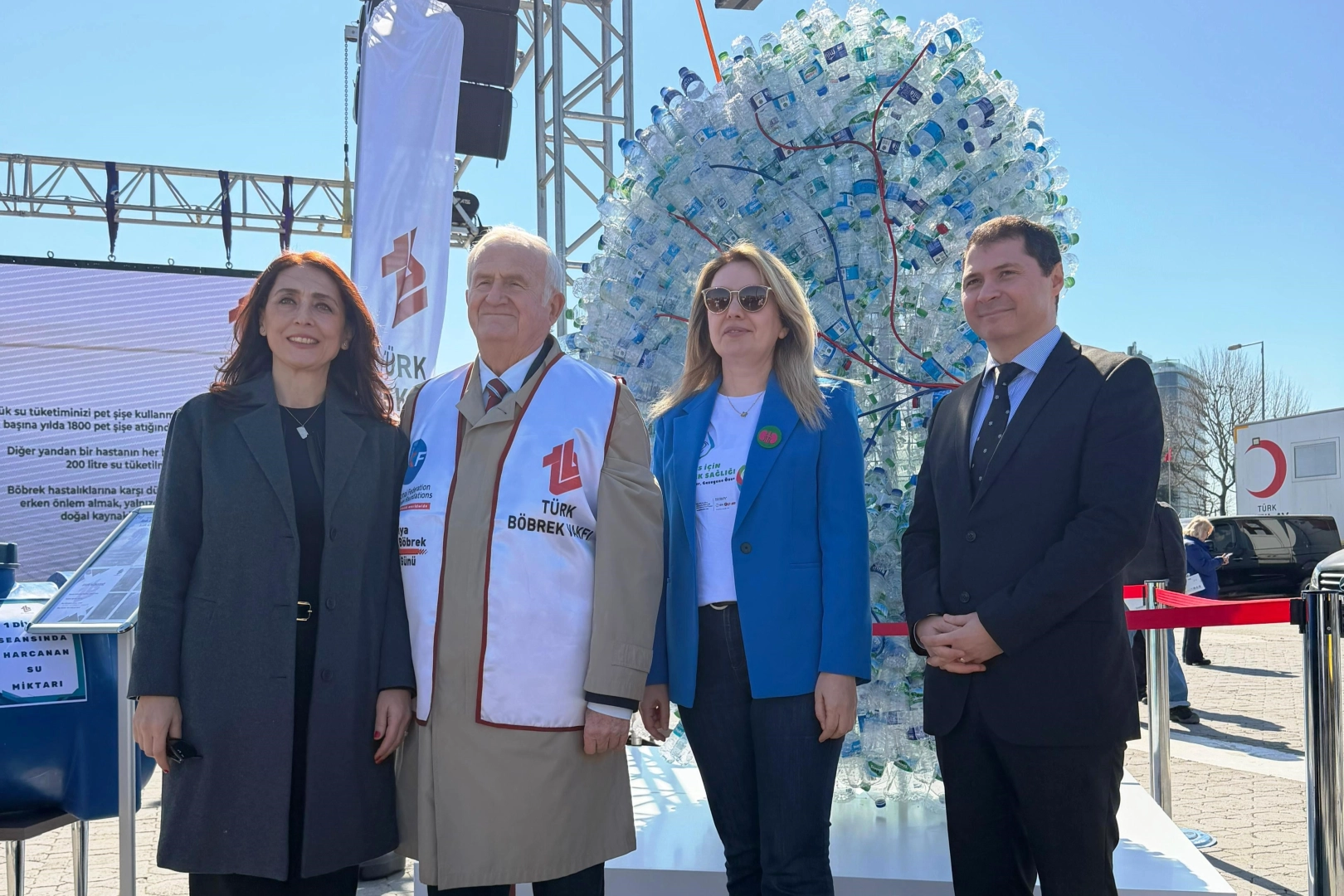 Dünya Böbrek Günü kapsamında, Türk Böbrek Vakfı tarafından 1800 pet şişe kullanılarak hazırlanan 2,5 metre yüksekliğinde dev böbrek maketi, vatandaşların yoğun ilgisiyle karşılandı. Yaklaşık 2,5 metre yüksekliğinde ve 150 kilogram ağırlığındaki maket, plastik tüketiminin doğaya etkisini sembolik bir şekilde gözler önüne serdi. Düzenlenen etkinlikte hem böbrek hastalıklarına dikkat çekildi hem de su kaynaklarının korunmasının önemi vurgulandı. Etkinlikte konuşan Türk Böbrek Vakfı Başkanı Timur Erk, "Türkiye’de yaklaşık 72 bin son dönem kronik böbrek yetmezliği hastası bulunuyor. Bu hastaların yaklaşık 69 bini hemodiyaliz, 3 bini ise periton diyalizi tedavisi ile yaşamını sürdürüyor. Hemodiyaliz tedavisinde kullanılan su miktarı ise konunun çevresel boyutunu ortaya koyuyor. Bir hastanın 4 saatlik tek bir hemodiyaliz seansında en az 200 litre şebeke suyu kullanılıyor. Türkiye genelinde yılda yaklaşık 2-2,5 milyon ton su, bu tedavi sürecinde kullanıldıktan sonra atığa dönüşüyor" dedi. Erk, kronik böbrek yetmezliğinin büyük ölçüde önlenebilir bir hastalık olduğuna dikkat çekerek, "Böbreklerimizi korumak aslında doğal kaynaklarımızı korumaktır. İklim değişikliği ve su kaynaklarının giderek azalması, suyun değerini her zamankinden daha önemli hale getiriyor. Günlük 2-2,5 litre su tüketimi gibi basit alışkanlıklar hem böbrek sağlığımızı koruyabilir hem de sağlık sistemindeki büyük yükün önüne geçebilir" dedi. İstanbul Üniversitesi-Cerrahpaşa Cerrahpaşa Tıp Fakültesi Çocuk Nefrolojisi Uzmanı Prof. Dr. Nur Canpolat ise böbrek hastalıklarının dünya genelinde hızla arttığını belirterek, "Dünya genelinde yaklaşık her 10 kişiden birinde kronik böbrek hastalığı bulunuyor. Türkiye’de ise her 6-7 yetişkinden biri böbrek hastalığı riski taşıyor. Ancak böbrek sağlığının temelleri çocukluk döneminde atılır. Yeterli su tüketimi, sağlıklı beslenme, tuz ve paketli gıdaların azaltılması, fiziksel aktivite ve gereksiz ilaç kullanımından kaçınmak böbrek sağlığını korumada büyük önem taşır" dedi. Canpolat ayrıca çocukların iklim değişikliği, hava kirliliği ve su kaynaklarının azalması gibi çevresel risklere karşı daha hassas olduğunu vurgulayarak, çevreyi korumanın aynı zamanda çocukların böbrek sağlığını korumak anlamına geldiğini ifade etti.