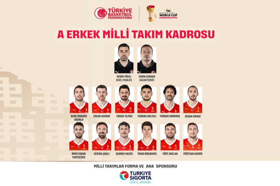 FIBA 2027 Basketbol Dünya Kupası Elemeleri C Grubu’ndaki ikinci maçında A Milli Erkek Basketbol Takımı, bugün TSİ 19.00'da deplasmanda İsviçre ile karşılaşacak. Ay-yıldızlılarda bu mücadelenin kadrosu da belli oldu. 12 Dev Adam'ın kadrosunda şu oyuncular yer aldı: "Şehmus Hazer, Yiğitcan Saybir, Sertaç Şanlı, Yiğit Arslan, Tarık Biberoviç, Furkan Haltalı, Berk İbrahim Uğurlu, Furkan Korkmaz, Ercan Osmani, Erkan Yılmaz, Kenan Sipahi ve Ömer Faruk Yurtseven"