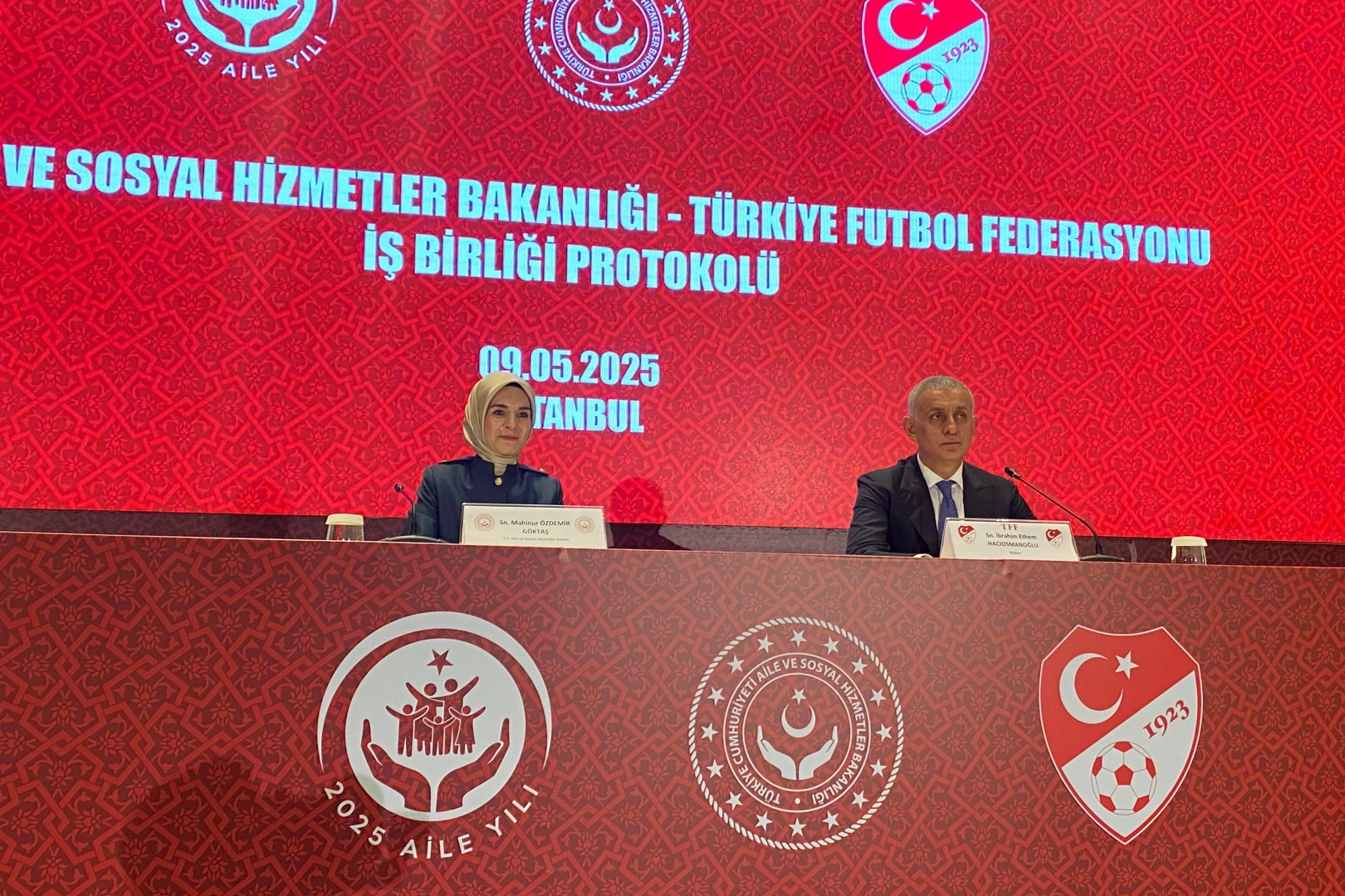 2025 Aile Yılı kapsamında, Aile ve Sosyal Hizmetler Bakanlığı ile Türkiye Futbol Federasyonu arasındaki iş birliği protokolü imza töreni, TFF Hasan Doğan Milli Takımlar Kamp ve Eğitim Tesisleri Orhan Saka Konferans Salonu'nda gerçekleştirildi. Toplantıda Türkiye Cumhuriyeti Aile ve Sosyal Hizmetler Bakanı Mahinur Özdemir Göktaş, Türkiye Futbol Federasyonu Başkanı İbrahim Ethem Hacıosmanoğlu ve çocuklar yer aldı. İbrahim Hacıosmanoğlu: "Devlet himayesinde bulunan çocuklar arasında taramalar başlatacağız" Toplantıda açıklamalarda bulunan İbrahim Hacıosmanoğlu, aile yapısının güçlendirilmesi, sosyal refahın artırılması ve dezavantajlı bireylerin desteklenmesinin tüm kurumların görevi olduğunu belirterek, "Bakanlığımızla yapacağımız anlaşmayla aile, çocuk hizmetleri, engelliler, yaşlılar, şehit yakınları ve gazilerimizle kadınların güçlenmesi için ortak projelere imza atacağız. Projelerin hayata geçirilmesi için üzerimize düşenleri fazlasıyla ve titizlikle yapacağız. Bunu 'pozitif ayrımcılık' değil, doğrudan görev ve sorumluluk olarak görüyoruz. 23 Nisan Ulusal Egemenlik ve Çocuk Bayramı'nda büyük bir mutlulukla çocuklarımızı burada ağırladık. Onların heyecanına ve yaşam sevinçlerine ortak olduk. Yine nisan ayında, UEFA iş birliğiyle Malatya'da depremden etkilenen çocuklar için futbol etkinlikleri düzenledik. Konteyner kentlerde kalan çocuklarımız maçlarda gönüllerince eğlendiler. Beceri parkurlarında eğitsel oyunlar ile keyifli anlar geçirdiler. Aile ve Sosyal Hizmetler Bakanlığımız ile iş birliğimizin yarınlara umut olacağına inanıyorum. Bu protokolle devlet himayesinde bulunan çocuklar arasında taramalar başlatacağız. Buradaki yeteneklerin Türk futboluna kazandırılması için her türlü desteği vereceğiz" diye konuştu. "Yarının büyükleri olan çocukların iyi şartlarda yetişmesi, bir ülkenin teminatıdır" Sağlam bir aile yapısının, yarınlara güvenle bakan bir toplum inşa ettiğini aktaran Başkan Hacıosmanoğlu, "Yarının büyükleri olan çocukların iyi şartlarda yetişmesi, bir ülkenin en önemli teminatıdır. Dezavantajlı bireylerin toplumun her alanında yer almaları, toplumsal barışın ve iç huzurun olmazsa olmazıdır. Bu vatan için şehit olanların yakınları ve gazilerimiz de bize emanettir. Bu nedenle, Türkiye Futbol Federasyonu olarak bu projelerde her zaman seve seve yer alacağımızı bir kez daha vurgulamak istiyorum. Anlaşmanın hayırlı ve uğurlu olmasını diliyorum. Bakanımıza, bakanlığımıza ve bu süreçte emeği geçen herkese gönülden teşekkür ediyorum" değerlendirmelerde bulundu. Bakan Mahinur Özdemir Göktaş: "Bu birliktelik; sporun birleştirici gücünü, sosyal hizmetin şefkatiyle buluşturma iradesidir" Türkiye Cumhuriyeti Aile ve Sosyal Hizmetler Bakanı Mahinur Özdemir Göktaş, Türkiye Futbol Federasyonu ile iş birliklerini güçlendirmek için bir arada olduklarını ifade ederek, "Bu protokol devlet korumasındaki çocuklarımızın fiziksel, ruhsal ve sosyal gelişimlerini destekleyeceğimiz kapsamlı bir iş birliğinin başlangıcıdır. Sahadaki futbolcunun elini tutan bir çocuğun gülümsemesi, tribünde ailesiyle maçı izleyen bir annenin heyecanı, gazi bir babanın onurlu bakışı demektir. Bu birliktelik; sporun birleştirici gücünü, sosyal hizmetin şefkatiyle buluşturma iradesidir. Ben bu vesileyle Başkanımız İbrahim Hacıosmanoğlu başta olmak üzere sürece katkı sunan herkese teşekkürlerimi sunuyorum. Kurulan bu yeni iş birliğinin hayırlı olmasını diliyorum" dedi. "Futbol, her zaman bir oyundan fazlası olmuştur" Futbolun, her zaman bir oyundan fazlası olduğunu belirten Bakan Mahinur Özdemir Göktaş, "Kimi zaman yeşil sahalarda, kimi zaman mahalle aralarında çocuklar sadece bir topun peşinde değil. Aslında hayallerinin peşinde koşarlar. Bir bağ kurarlar. Takım arkadaşlarıyla, farklı takımı tuttukları kardeşleriyle, tribün de maçı seyrettikleri aileleriyle. Bu anlamda futbol, bir spor dalı olmanın ötesinde kuşakları buluşturan, aile içi iletişimi ve toplumsal dayanışmayı güçlendiren bir gönül köprüsüdür. Aynı zamanda birleştiren, iyileştiren, umut veren bir sosyal araçtır. 2025 Aile Yılı kapsamında yaptığımız bu iş birliği de, spor aracılığıyla bu köprüleri sağlamlaştırmak, birliğimizi ve beraberliğimizi güçlendirme kararlılığımızın somut bir göstergesidir. Bu protokolle devlet korumasında ve bakım altındaki çocuklarımız, müsabakaları ücretsiz izleyebilecek. Bunun yanı sıra koruyucu aileler ve çocukları, şehit yakınları, gazi ve gazi yakınları, milli maçlarda stadyumlarda ücretsiz ağırlanacak. Çocuklarımız, futbolcularla birlikte sahaya çıkarak müsabaka seremonilerinde yer alacak ve unutamayacakları anılar biriktirecek. Aile tribünleri oluşturarak çocuklarımızın, ailelerinin güvenli ve konforlu alanlarda maçları izlemelerini sağlayacağız. Koruma altındaki çocuklarımızdan oluşan takımların teknik destek almasını sağlayacağız. Ayrıca çocuklarımızın güvenliği, kadınların güçlenmesi gibi sosyal hizmetlerimizin görünürlüğünü artıracağız. Ayrıca engellilerin ve yaşlılarımızın sosyal hayata daha aktif katılımını sağlayacak etkinlikler yapacağız. Bu sayede sporun kapsayıcı ve dönüştürücü gücünü toplumun her kesimine ulaştıracağız. Çocuklarımızı, kadınları, engellileri, yaşlılarımızı aynı tribünde buluşturacağız. Böylece, aile bağlarını güçlendiren, birlik ve beraberlik kültürünü artıran örnek bir model ortaya koyacağız" açıklamasını yaptı. "Aile, toplumun temel taşı, ülkemizin en sağlam kalesidir" 2025 yılını 'Aile yılı' ilan ettiklerini hatırlayan Mahinur Özdemir Göktaş, "Cumhurbaşkanımızın da ifade etti