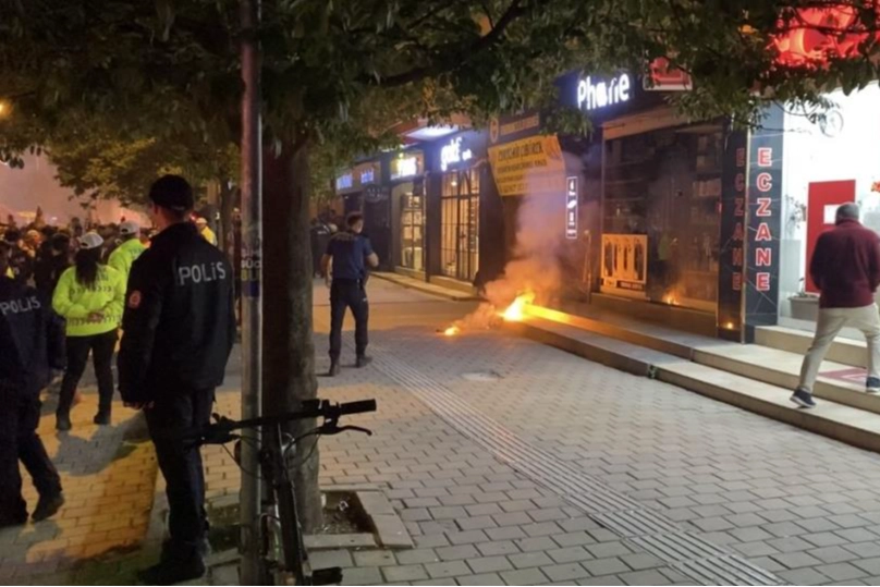 Olay, İnegöl ilçesinde meydana geldi. Galatasaray’ın şampiyon olması ile kutlamalar için sokağa çıkan taraftarlar, bir süre sonra Fenerbahçeliler Derneği’nin önüne geldi. Burada bir taraftar, yaktığı meşaleyi derneğe doğru fırlattı. Bunun üzerine polis ekipleri, taraftarı etkisiz hale getirdi. Yapılan üst aramasında üzerinden bıçak çıkan taraftar gözaltına alındı.